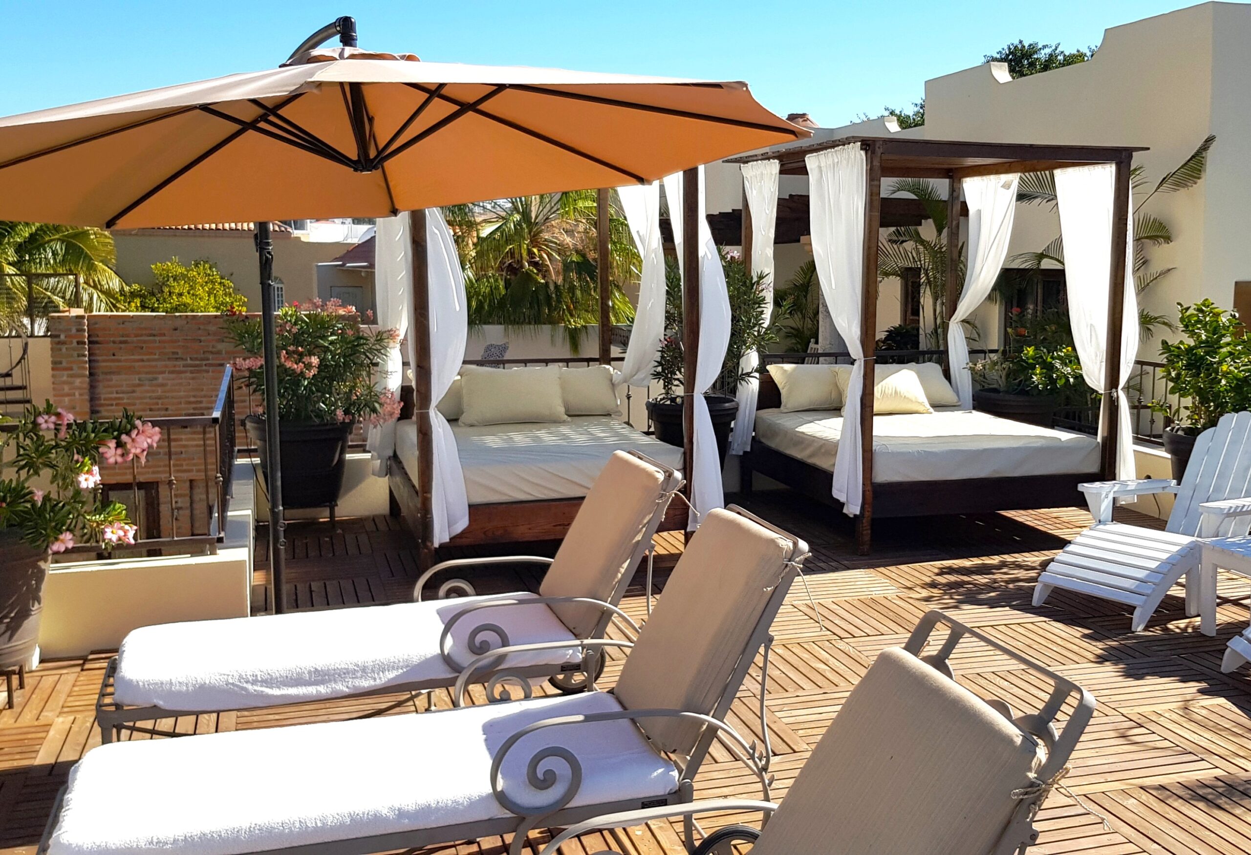 Posada de las Flores in La Paz overlooks the Sea of Cortez and radiates charm and sophistication. The hotel embraces its colonial past and each room is tastefully decorated in a Mexican-chic style. The hotel has plenty of shady areas for guests to relax with good WiFi and, although there isn’t a pool, the beach is opposite and easily accessible.