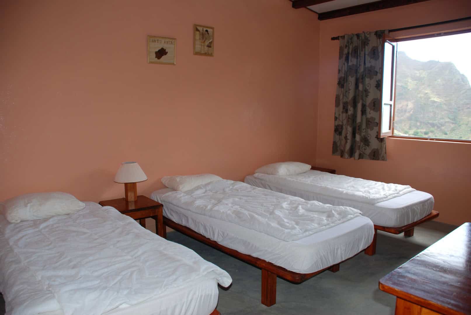 The Casa is Belgian-Cape Verdean run, and English is also spoken. There are nine basic rooms, set out in cottages on the steep mountain terraces. Rooms are simple, with large and comfortable beds. Five have private bathrooms with a shower while the other four share two showers and three toilets between them. There is also one family room which sleeps up to six. During the day the dining room turns into a kindergarten for local children and any donations towards this kindergarten are always welcome.