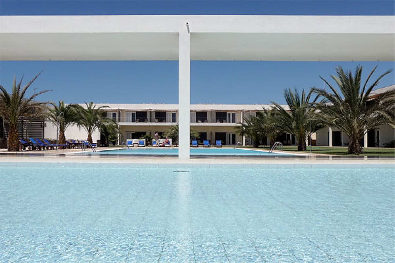 Designed by respected Portuguese architect Guilherme Paris, the compact and chic Hotel Dunas de Sal is set back from the beach.