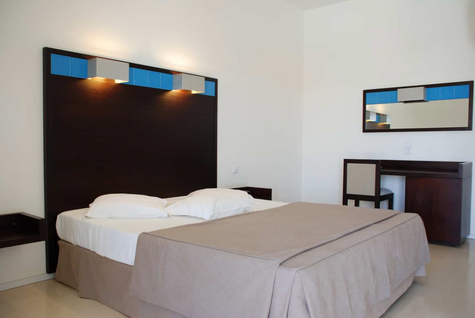 With just forty-eight rooms and one suite, guests are able to enjoy an attentive, personal service in this relatively small establishment. As you would expect from a hotel of this standard, the well-equipped rooms are en suite with private balconies and have air-conditioning, satellite TV, room safe, hairdryer and minibar. The suite has a hydro-massage bath.