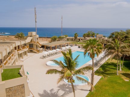 The Hotel Oasis Atlantico Praiamar sits on the craggy coastline of Praia – overlooking the sea.