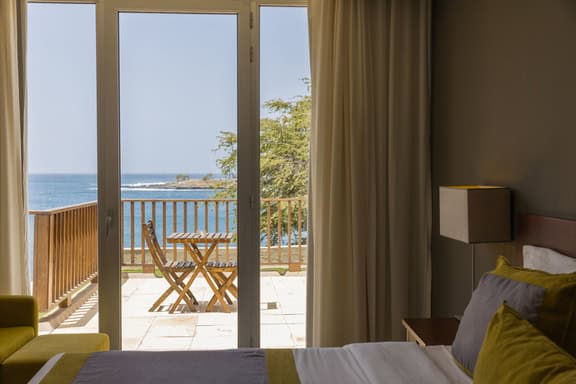 The hotel has a relaxed atmosphere, with friendly staff and excellent options for dining. The breakfast buffet always gets good reviews and is at the Prainha restaurant, located on a beautiful terrace overlooking the Atlantic Ocean. You can start your day sipping a morning coffee, whilst looking out over the water, listening to the waves crashing over the rocks. For lunches and early evening meals, there is a pool-side bar, offering both Cape Verdean and International Cuisine, as well as grilled meat and fish. Sushi is served from Wednesday to Saturday, made from local sourced fish. Rooms service is also available for those who would rather relax in their room. In the evening, you can enjoy music and cocktails on the clifftop bar, a highlight for most visitors.
