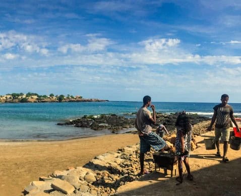 The Salav Guesthouse is a twenty-minute walk from Praia centre and looks out over a little beach on the western side of Praia’s main bay.