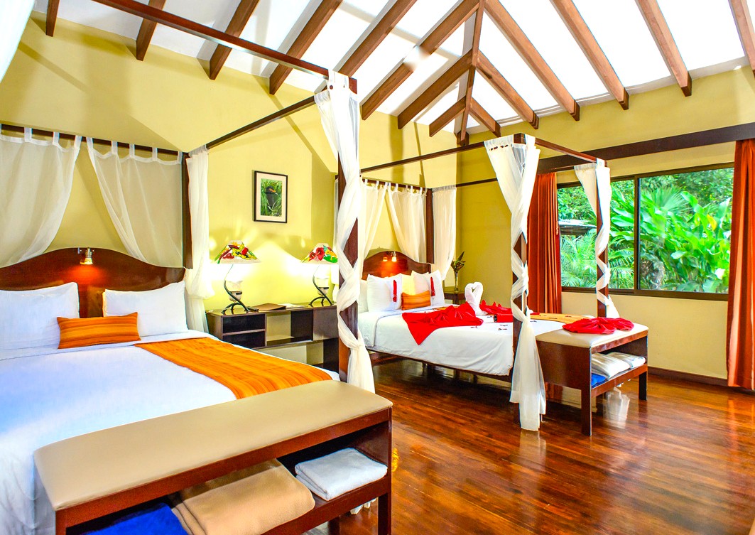 Stays in Tortuguero are all-inclusive. Only accessible by boat, the hotel is located along the riverside and ideal if you want to visit the canals and the wildlife sanctuary of Tortuguero. You are sure to see and hear wildlife up close. In the evening and in season, trips to the nearby beach can be organised to do some turtle watching.
