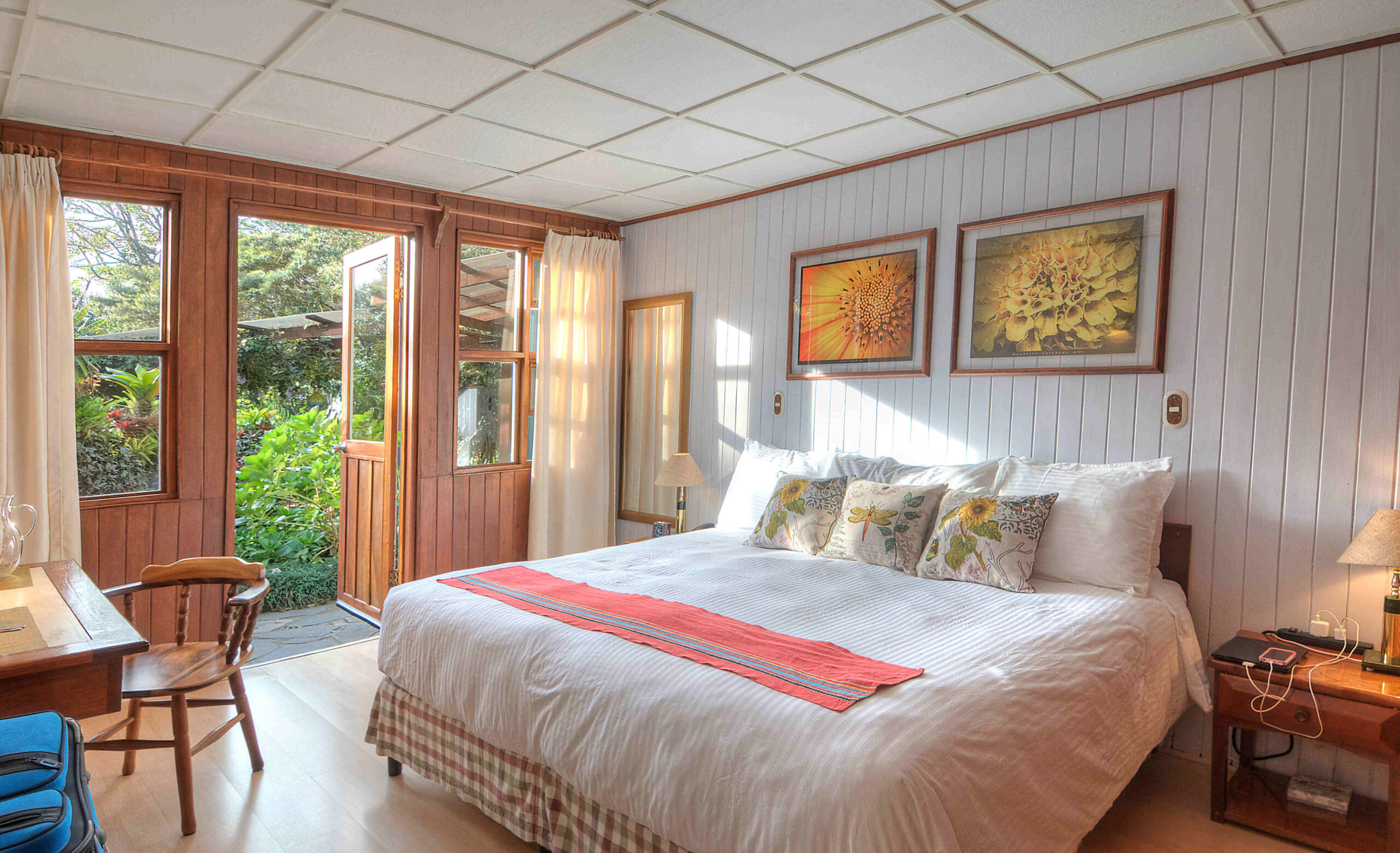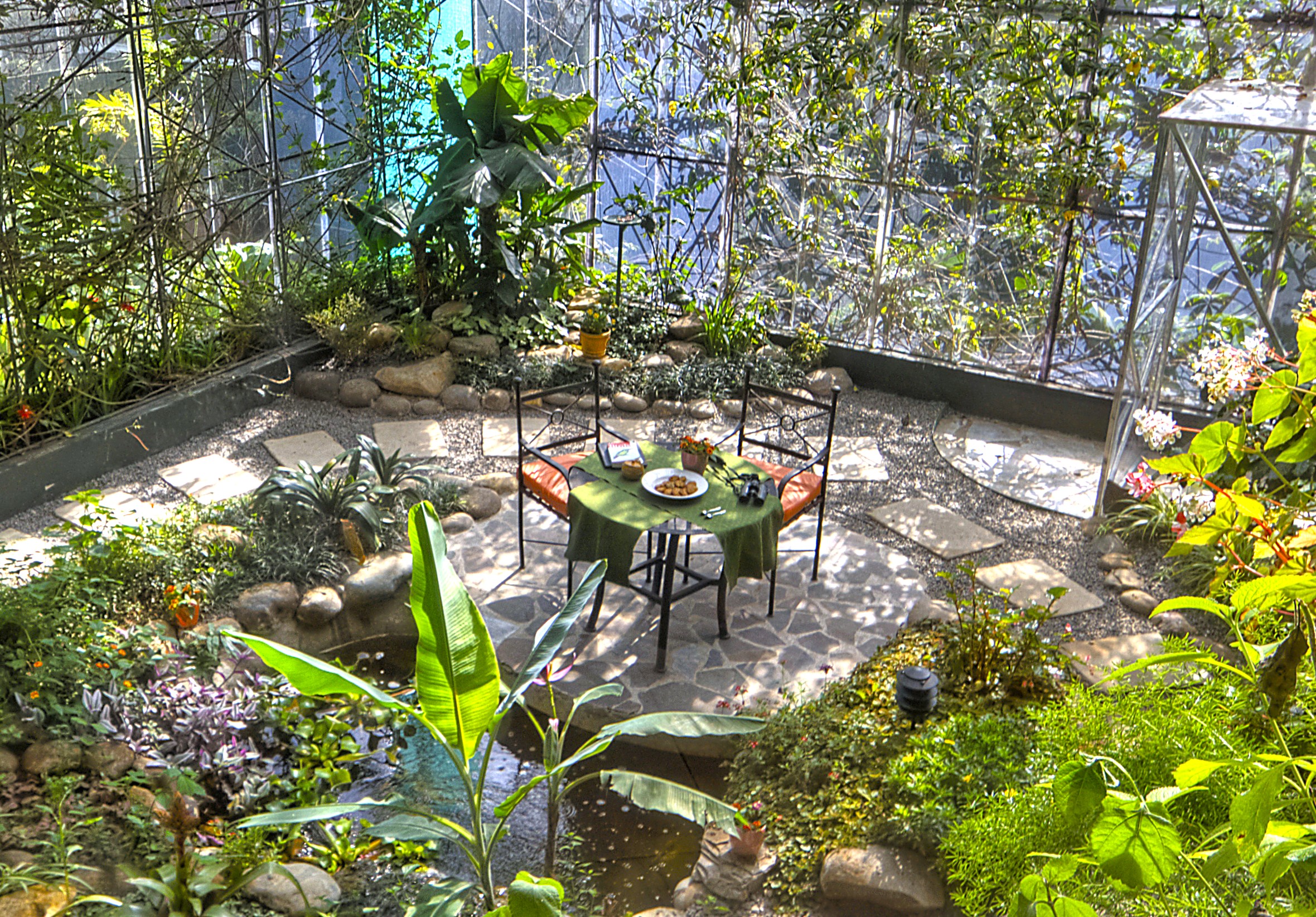 All rooms have Wi-Fi, A/C, safe, tea and coffee making facilities, but no television or minibar. There’s a solar-heated pool and jacuzzi, and lovely gardens stepped down into the cloud forest. The outdoor pool is a particularly lovely place to swim when it rains!
