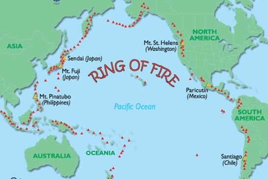 But did you know that nearly all earthquakes on our planet occur within this Pacific Ring of Fire, which runs all the way from New Zealand through the Pacific Islands, Indonesia and Japan to Russia and then down via the USA, Costa Rica and Chile back to New Zealand? Another interesting factor as well is that nearly two thirds of all volcanoes in the world can be found within this Pacific Ring of Fire.