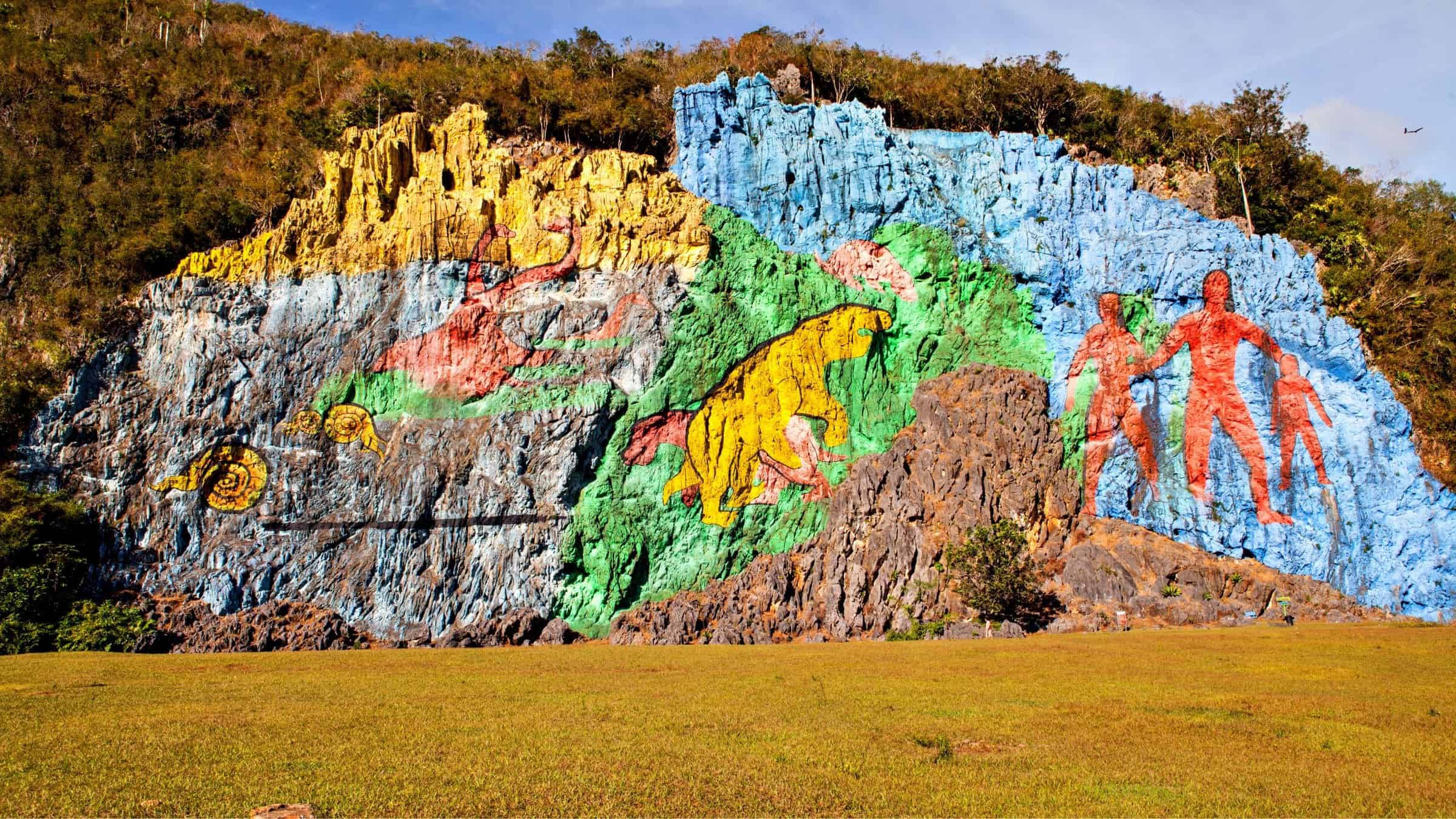 Drive through the Dos Hermanos Valley with the limestone ‘Mogote’ cliffs towering above and make a short stop at the Pre-History Mural. This 120-metre-tall painting, one of the largest al fresco paintings in the world, was commissioned by Fidel Castro in 1961 and depicts the images of the pre-historical time in Vinales. For some its a wonderful piece of artwork commission be Fidel himself, for others an eyesore of coloured paint on a beautiful Mogote cliff.