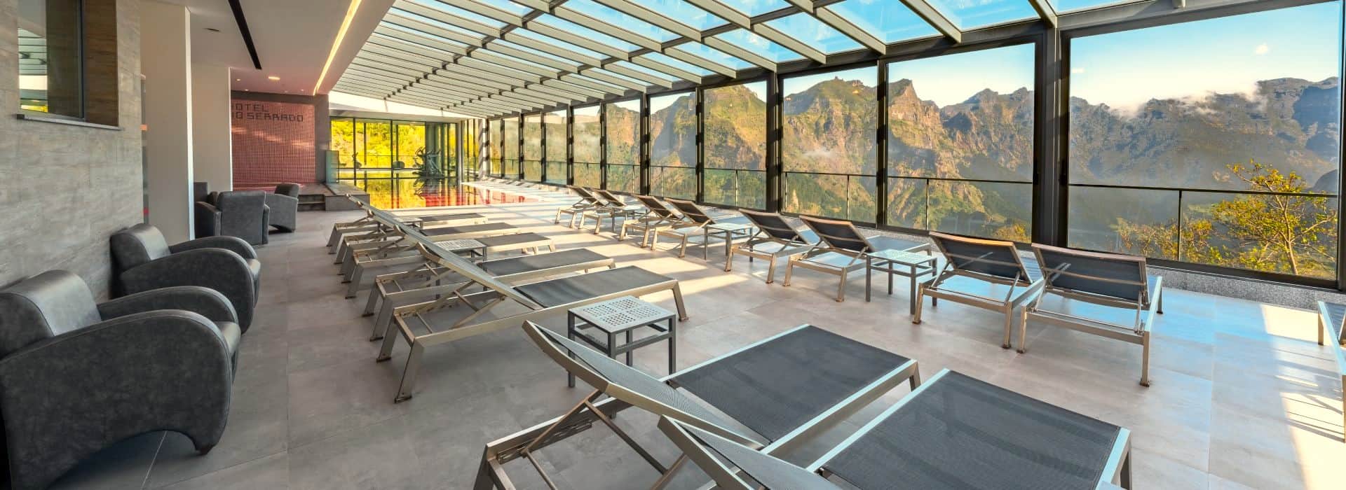 The Eira do Serrado Hotel sits on the summit of Pico do Serrado, towering over the village on its southern side. It’s one of the island’s most famous, most photographed views – it’s also the view from the each of the hotel’s twenty-six spacious balcony rooms, from the heated swimming pool, the fitness room and the restaurant terrace.