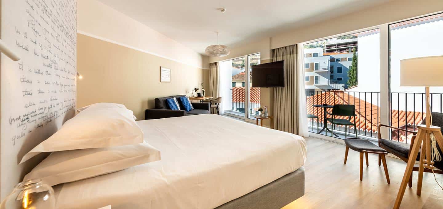 This newly-opened Pestana began life as the ‘Torre Bela’ – the 19th century seat of government in Camara for many years, before it’s 21st century transformation into a forty-two room boutique hotel. Although the decor is thoroughly modern, the renovations revealed beautifully preserved oak beams and imposing stone vaults, unveiling the building’s historic origins. These impressive architectural features are softened through the clever use of smooth, monochromatic whites and sapphire blues, reflecting hotel’s proximity to the warm waves of the Atlantic.