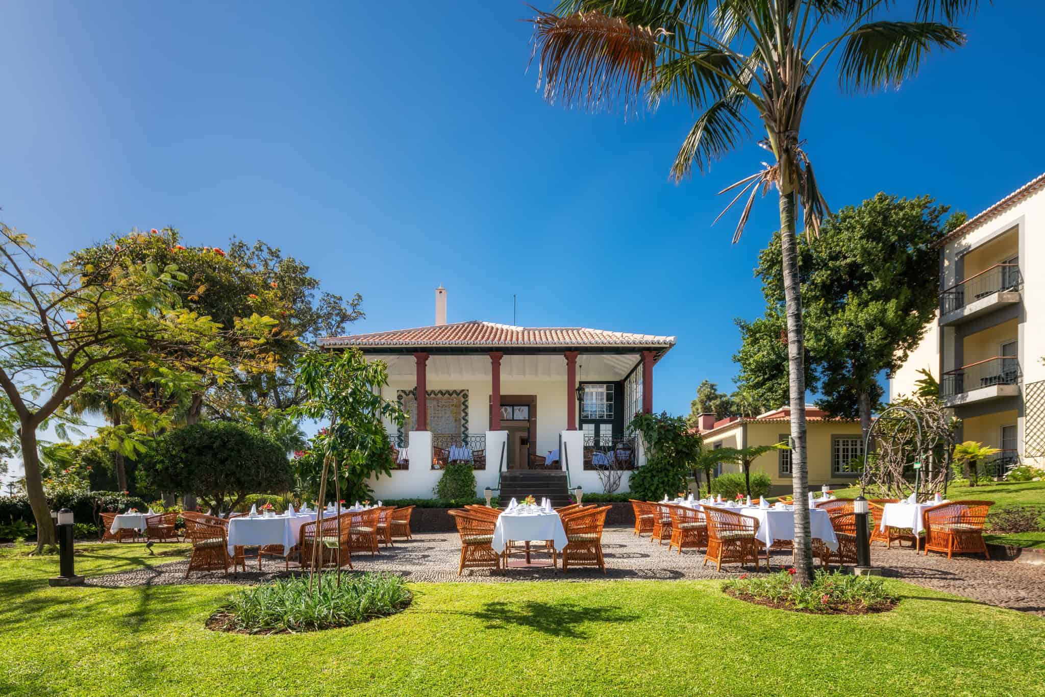 There are thirty-one double rooms and nine suites in total, overlooking a beautiful botanical garden, with Funchal and the Atlantic Ocean as a backdrop. The Viscount also lends his name to the quinta’s Beresford restaurant, which has an excellent à la carte menu showcasing the best of the island’s seasonal produce. The Colombo Bistro leads you to the outdoor pool, the sun terrace, and on into the extensive gardens – home to over five hundred species of trees, shurbs and herbaceous plants. There’s also a library, a billiards room, a sauna and a well-equipped gym.