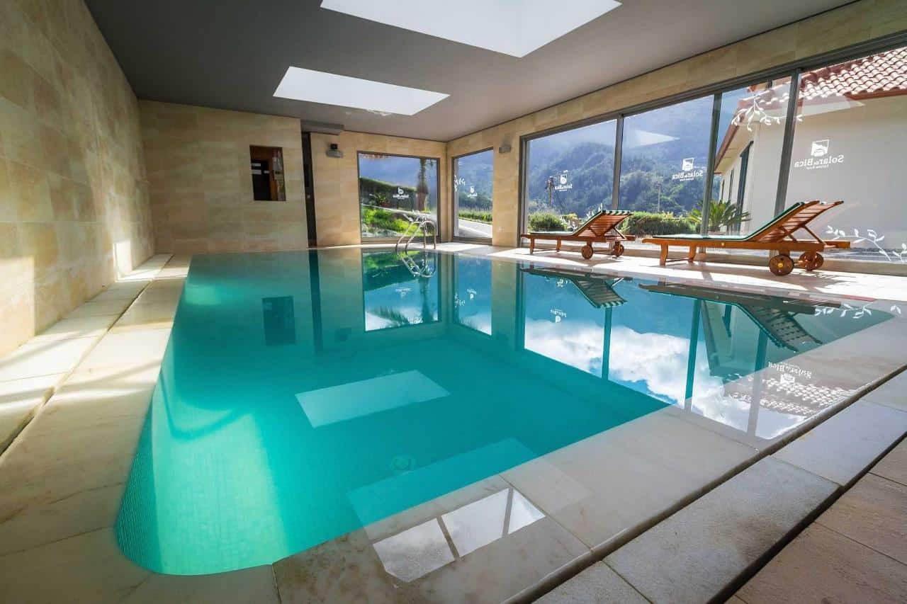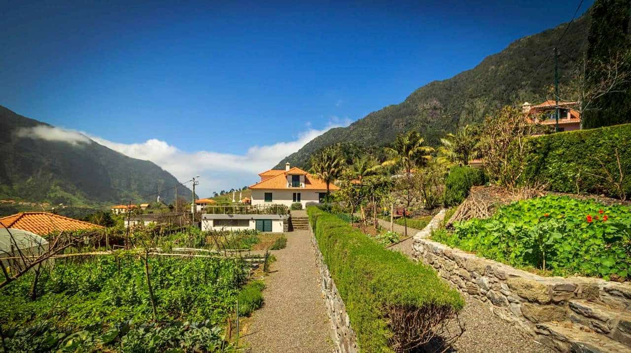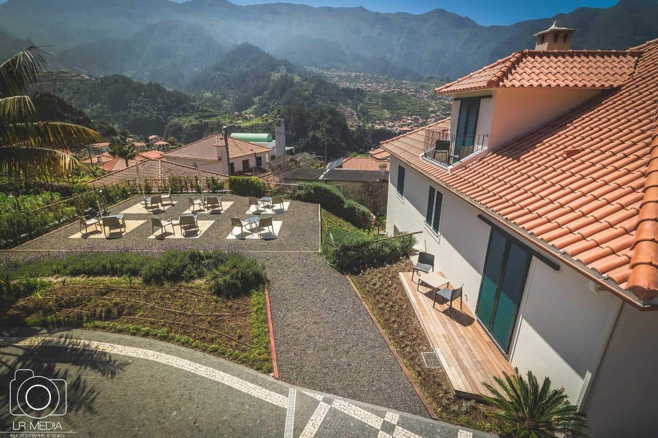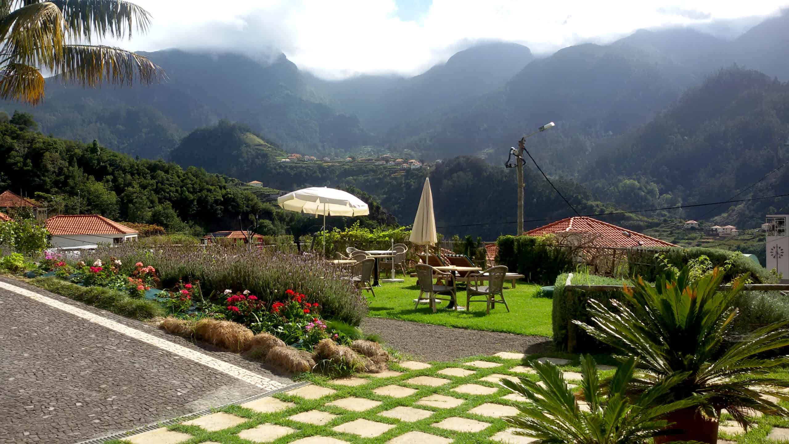 It’s twelve cosy en-suite rooms have wonderful views across the valley, to the imposing Espigao escarpment which dominates the landscape of Sao Vicente. The older main building retains much of the character of the original farmhouse, with it’s exposed, hand-cut cedar roof beams and antique furniture, whilst the more-modern extension houses the indoor heated swimming pool and a sauna, the open plan breakfast room, and a cosy guest lounge with an honesty bar.