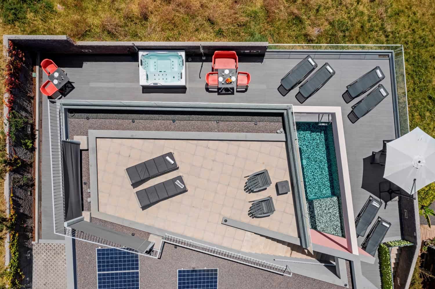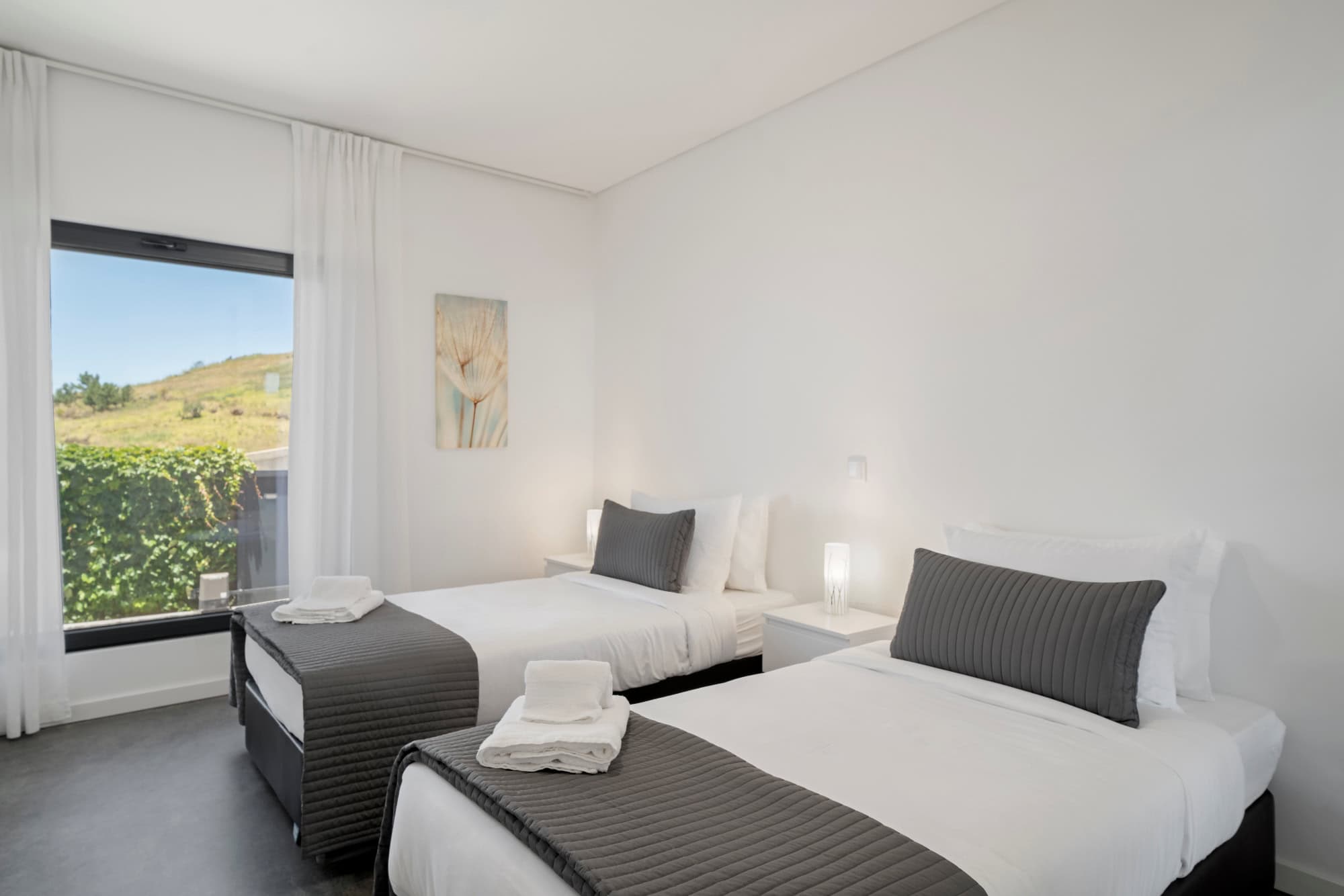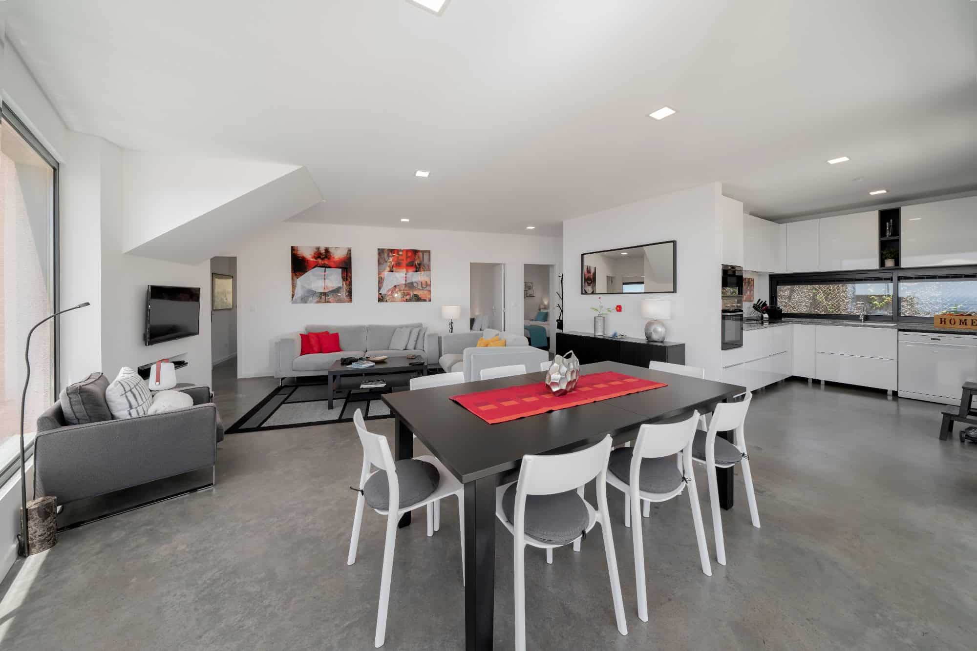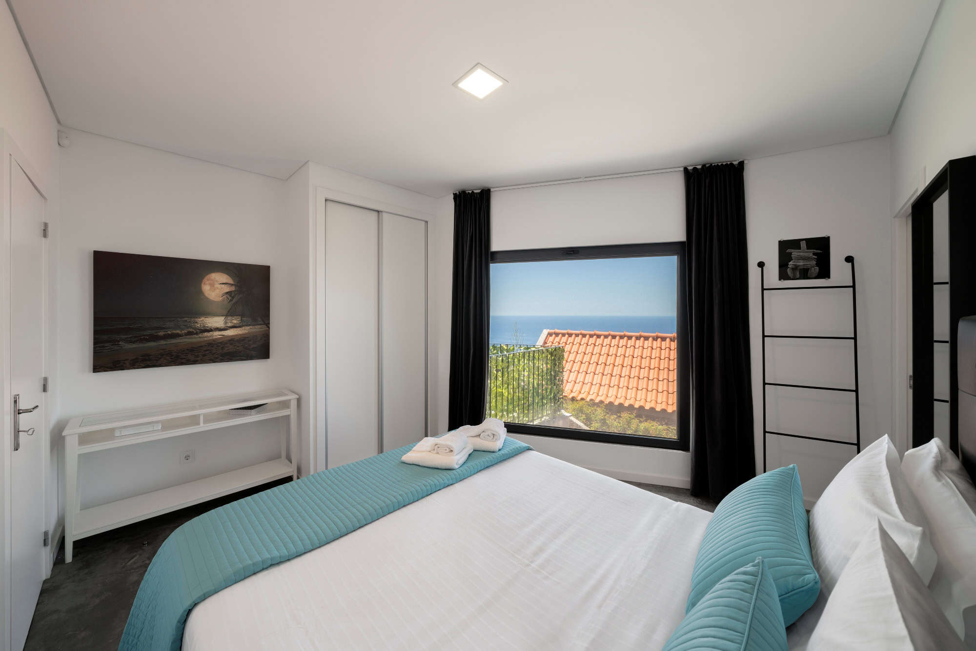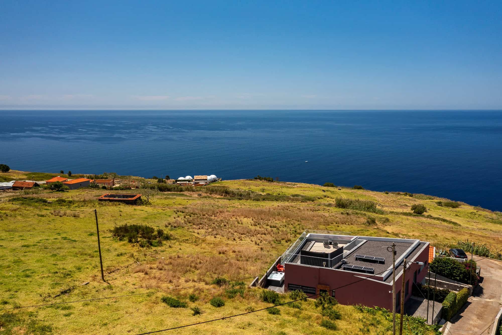 This detached, new-build villa is in the remote parish of Prazeres and has an unbroken sweeping view out across the Atlantic ocean. The open-plan living room/kitchen/diner area is on the ground floor and opens out onto a south-facing sun terrace and outdoor pool. There’s also a second, roof-top sun terrace, where you can relax in the evenings to enjoy the south coast famous sunsets. There are four bedrooms in total, two doubles and two twins, all on the ground floor. Heading downstairs, there’s also a lower ground floor with a games room and a small gym.