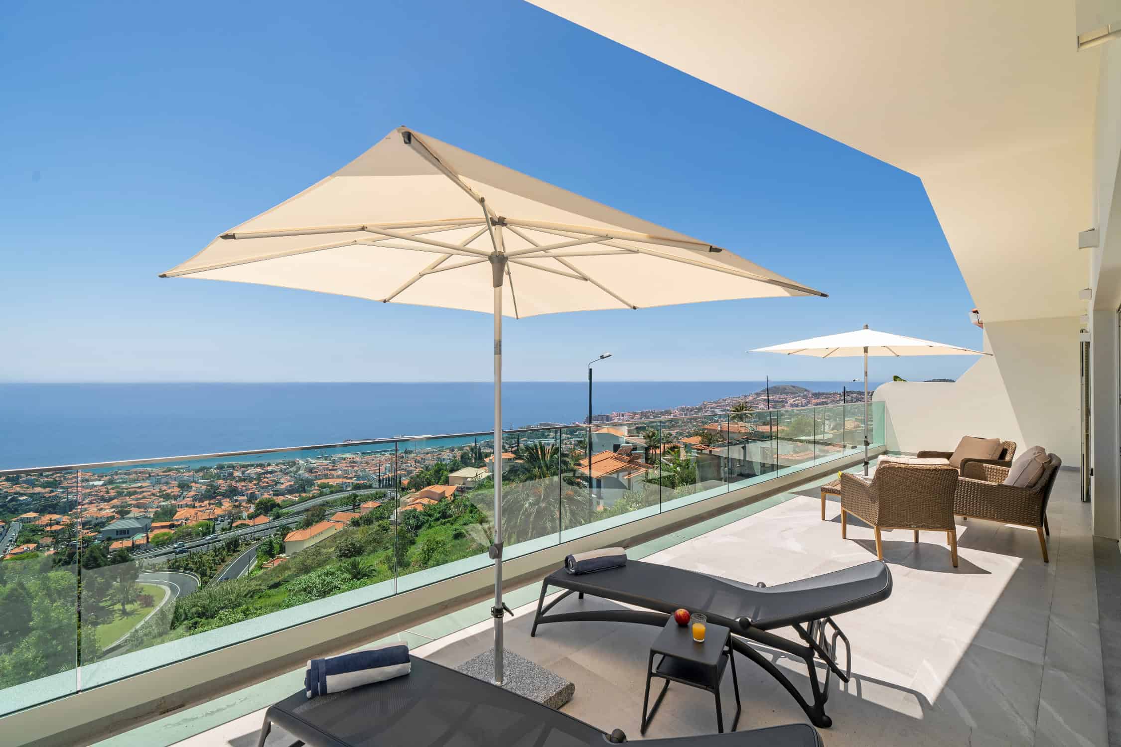 It’s no accident that the city sits within a natural amphitheatre – it’s seafront centre and the surrounding suburbs are protected by the high hills of the Monte, which help sustain the capital’s temperate year-round climate. Located in those very same hills, Villa Grande Visao looks down on Funchal from above – with sweeping views across the whole city, backed by the teal-blue of the Atlantic ocean.