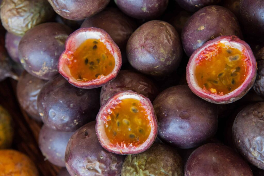 Bananas thrive, and as you begin to explore the island away from Funchal, you’ll see the steep hillsides of the south coast are covered in groves. Madeiran maracuja (passion fruit) comes in multiple varieties, right across the scale from sweet to sour. You’ll find maracuja-flavoured juices, jams and liqueurs on the supermarket shelves, and the fruits themselves are a popular ingredient in both sweet and savoury dishes. Figs, cherries, mangos, oranges, avocadoes, chestnuts and sweet potatoes are also grown with great success.