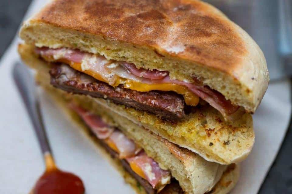 The classic Madeiran sandwich is the prego no bolo do caco – a steak sandwich with your choice of ham, cheese, egg and salad. It’s the bolo do caco flatbread that makes the sandwich – it’s almost a sourdough in taste, but sweet potato is added before proving. It sounds like it should be quite heavy, but it’s cooked on a heated stone rather than being baked in an oven, giving a crispy outside and soft inner. You’ll find a basket of bolo do caco offered as a starter to most meals, usually accompanied with a warm garlic butter.
