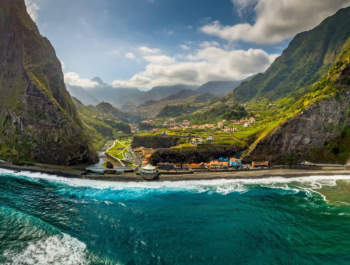 Explore the volcanic coast at Ponta de Sao Lourenco, the tropical forests of the Parque Natural do Ribeiro Frio, the Curral das Freiras Nuns Valley, and the islands’ picturesque coastal towns like Camara da Lobos, Santana and Ponta do Sol.