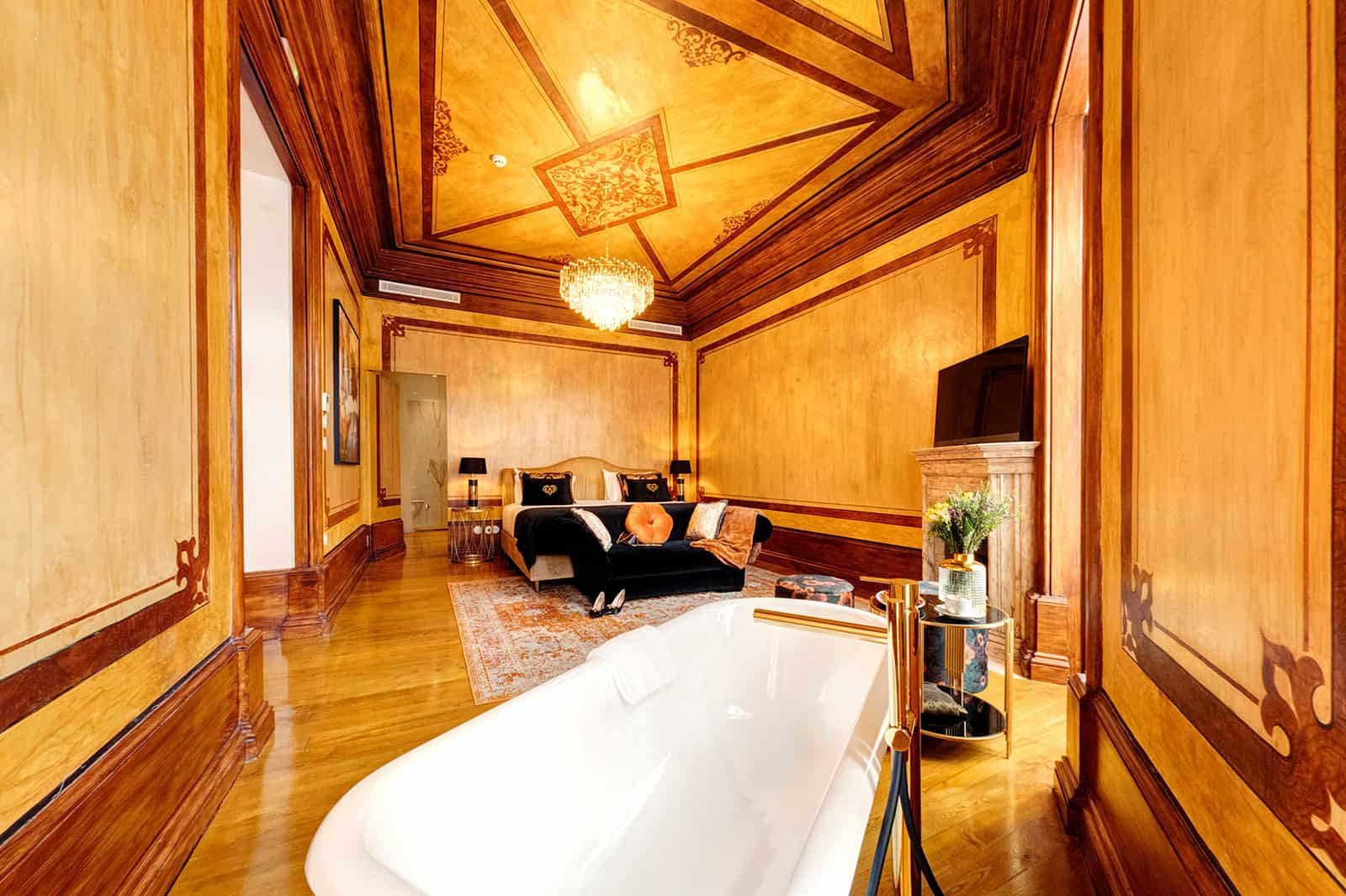 ‘Jose Estevao’ is similar in size to ‘Salineiras’, with its bright corner windows – Estevao was a distinguished journalist and politician, born in Aveiro in 1809 and he fought for the Liberals during the Siege of Porto. ‘Joao Evangelista’ is a superior suite with a balcony, named after former Archbishop Joao Evangelista de Lima Vidal. Finally, we have the two large master suites: ‘Sao Goncalinho’, with its impressive decorative panelling, is named after Aveiro’s patron saint and January’s Festas de Sao Goncalinho is a great time to visit. The ‘Princess Santa Joana’ suite stands out for its meticulously hand-crafted ceiling – the daughter of Dom Afonso V and Dona Isabel, Joana forsook royal life in favour of the Convento de Jesus and dedicated her life to helping the poor of Aveiro.