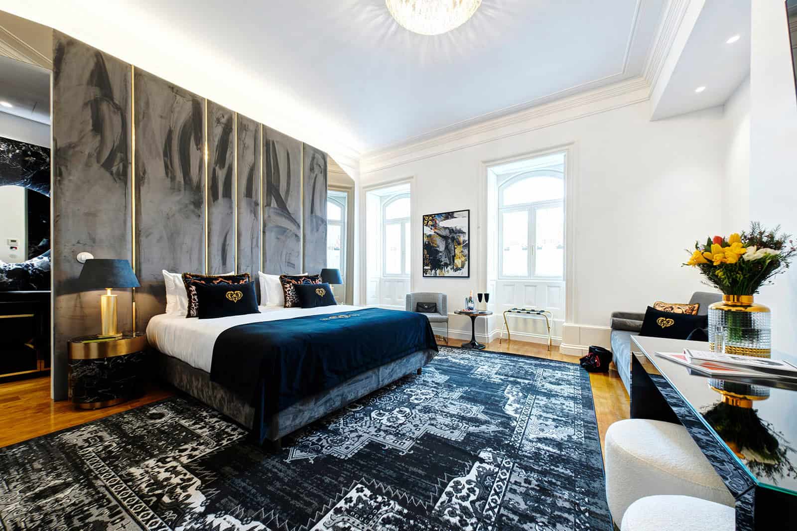 It took current owner Ana Saraiva five years to restore the 1877 Estrela Palace – a labour of love and the result speak for themselves. There are nine rooms in total and Ana pays homage to her local heroes in her naming of each, and in the specially commissioned artwork on display. Cosy ‘Salineiras’ is the smallest room – named in honour of the ladies who worked the local salt flats. Junior suites ‘Marnoto’, ‘Lourenco’ and ‘Homem Cristo’ are all similar in size and layout with a view of the river. The marnotos were the male counterparts of the salineiras – they’re both celebrated together in Antonio Quinta’s 1914 work the ‘Monumento ao Marnoto e a Salineira’ which now marks the entrance to the Salinas de Aveiro at the western mouth of the central canal. ‘Lourenco’ is named in memory of Dr. Lourenco Simoes Peixinho: president of Aveiro’s city council for almost a quarter of a century, and his reforms and public works helped the city to prosper in the early 1900s. Francisco Manuel ‘Homem Cristo’ established the Povo de Aveiro newspaper and helped to combat illiteracy in the town.