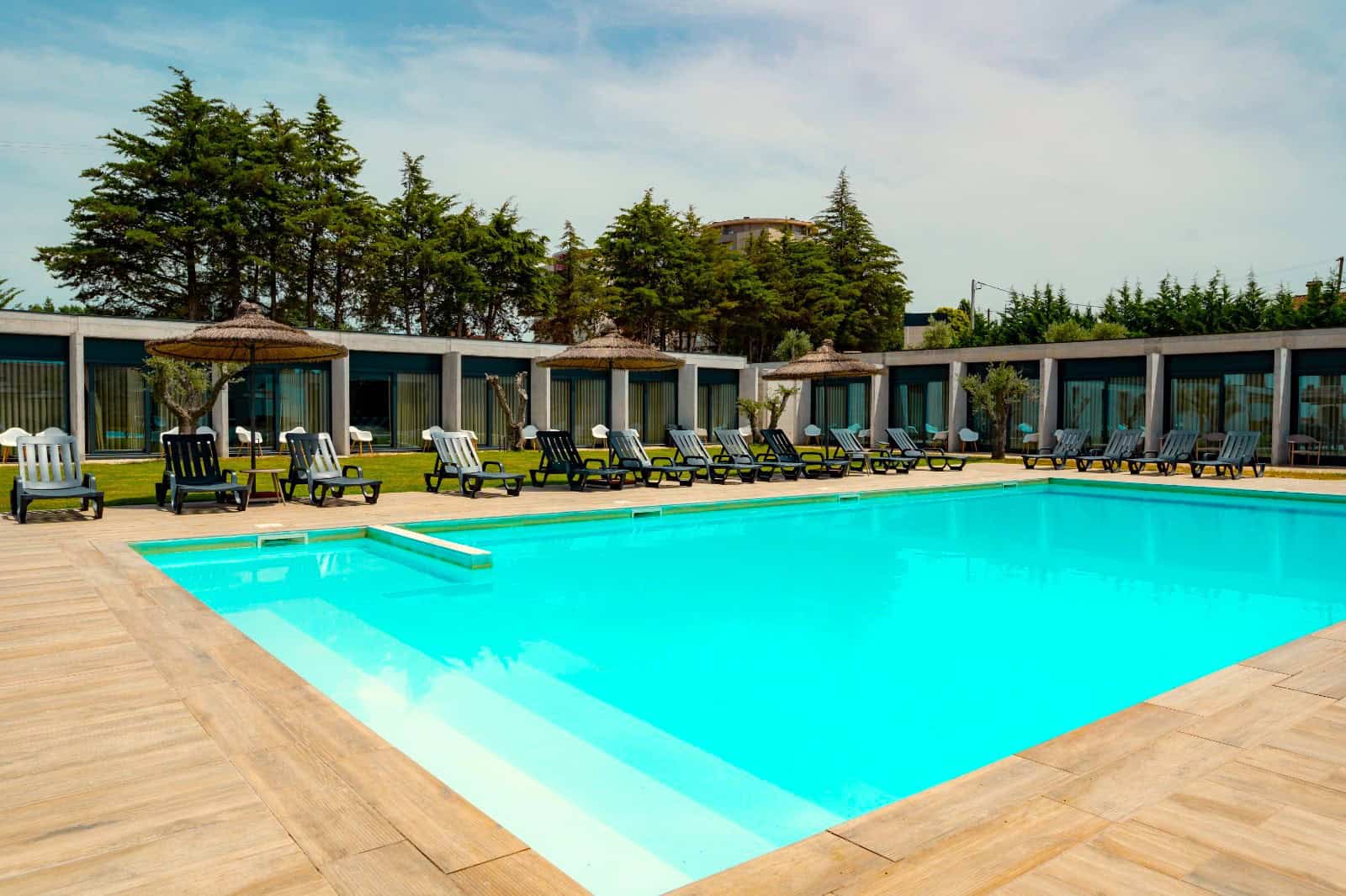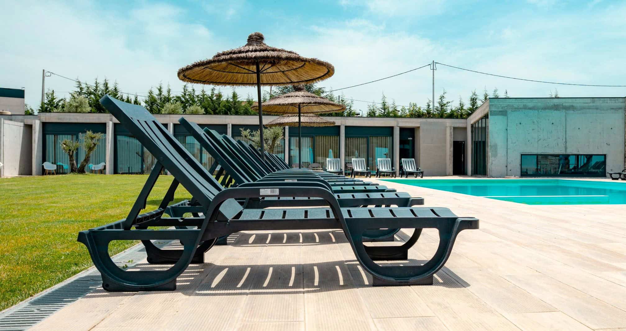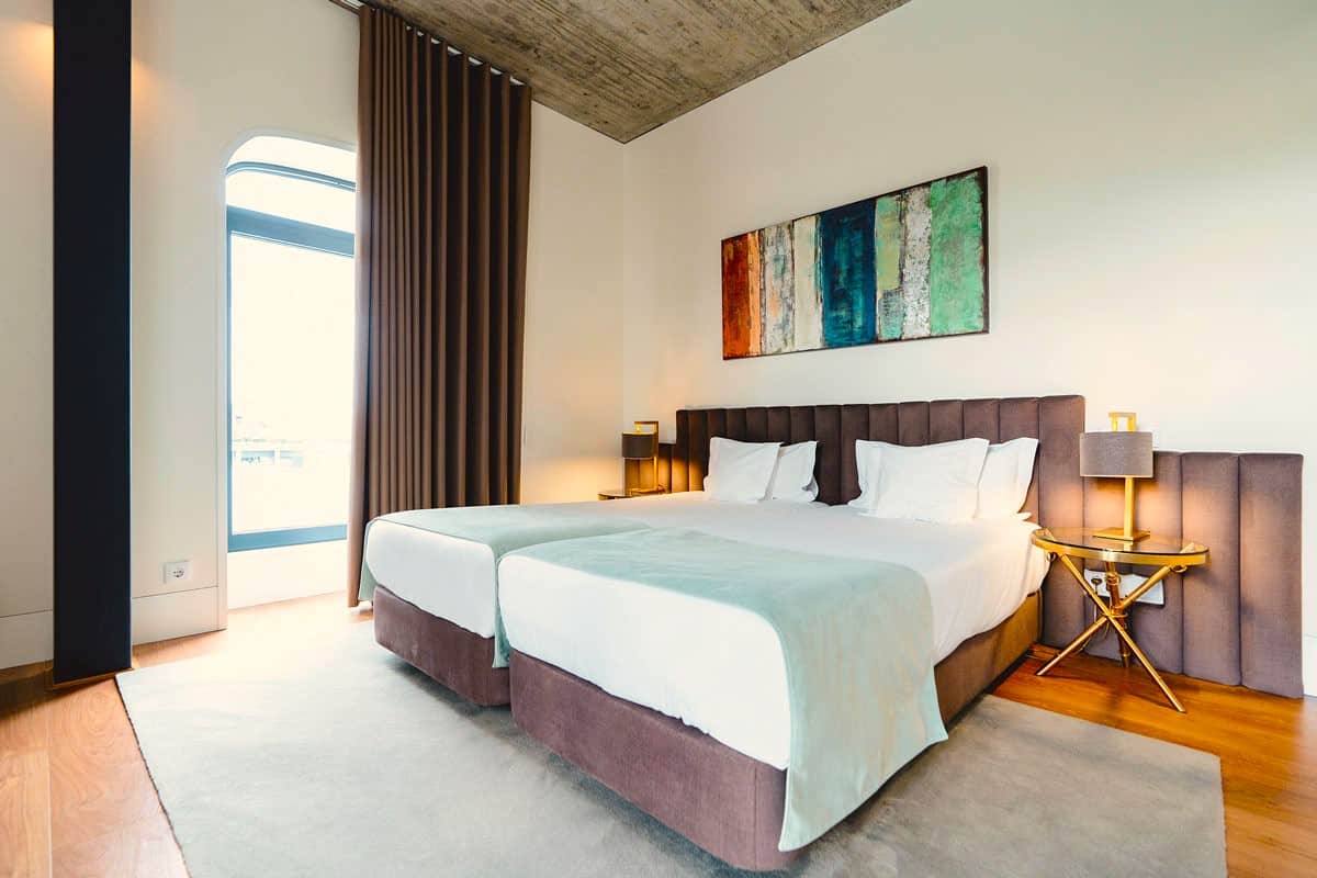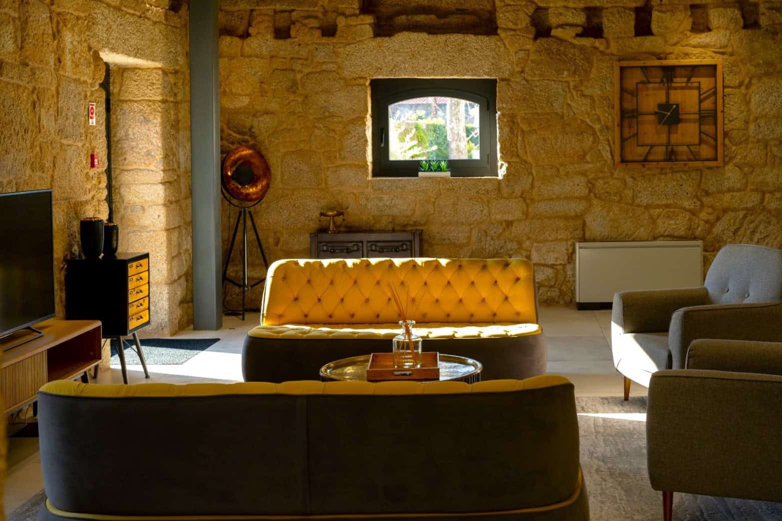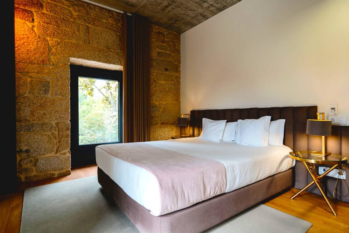 The Borralha began life as a rural manor house, situated on the old Roman road from Porto to Mirandela. The manor house was renovated and revamped 2017, with many of the original, rural architectural features retained. The broad, roughly-hewn sandstone walls and granite flagged floors in the guest lounges give a feel for the old – by contrast, the new 21st century wings of the hotel have a thoroughly-modern feel, with their austere concrete walls and black anodised steel. It’s a contrast that works: the cosy double and twin rooms in the main house have that old-meets-new feel, whilst the contemporary, minimalist décor of the Superior and King rooms also come with a small terrace, overlooking the courtyard garden and outdoor pool.