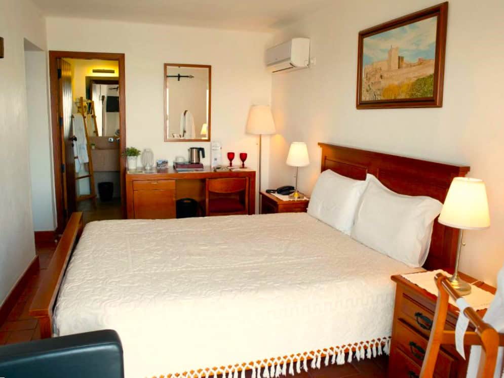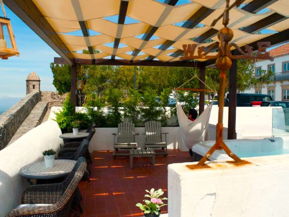 There are just nine air-conditioned ensuite rooms in total – Standard Doubles, Castle View Rooms and Mountain View Rooms – all decorated in soft, natural tones with traditional Alentejo terracotta-tiled floors. There’s also a wonderful rooftop terrace which provides sweeping, panoramic views across Sao Mamede countryside.