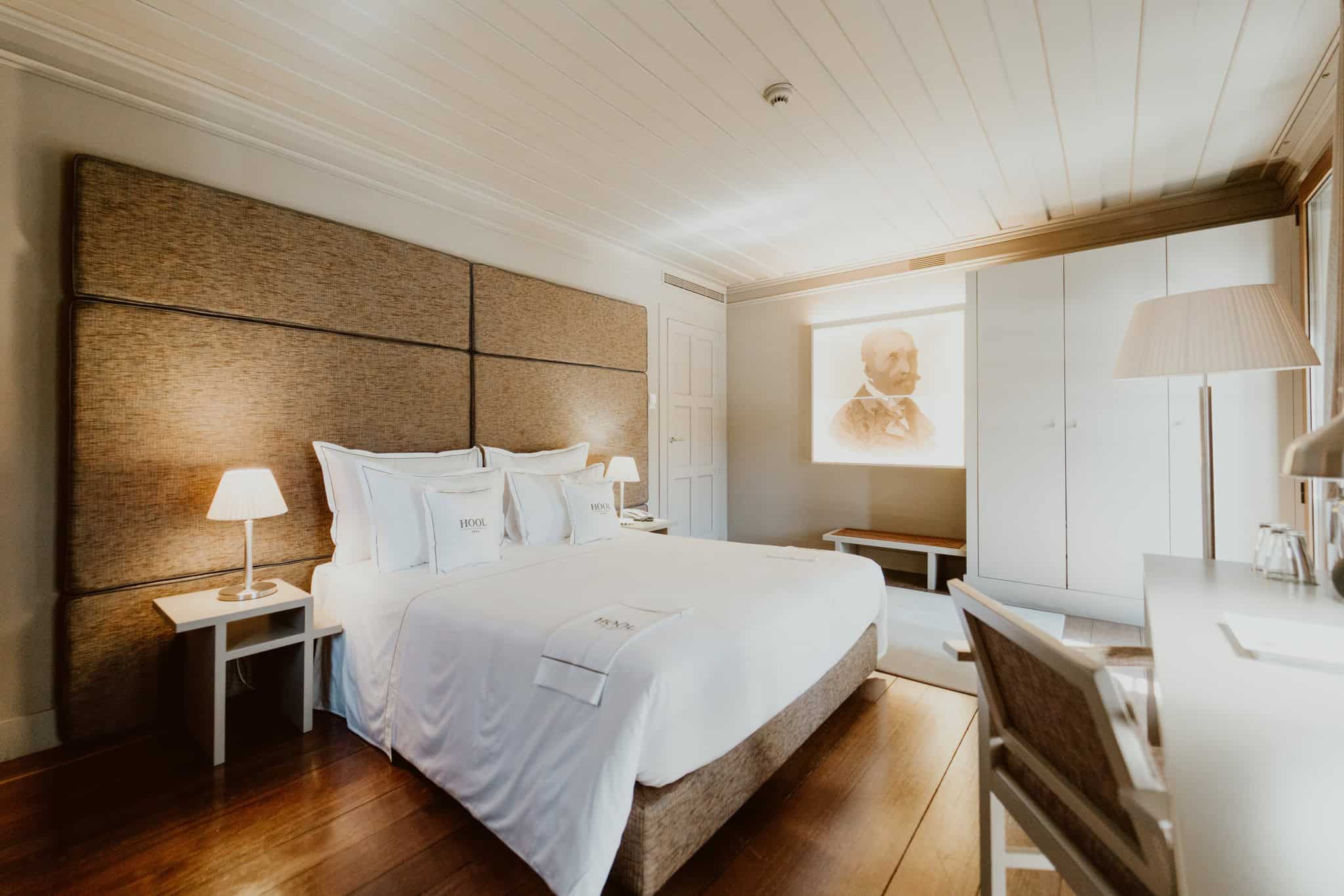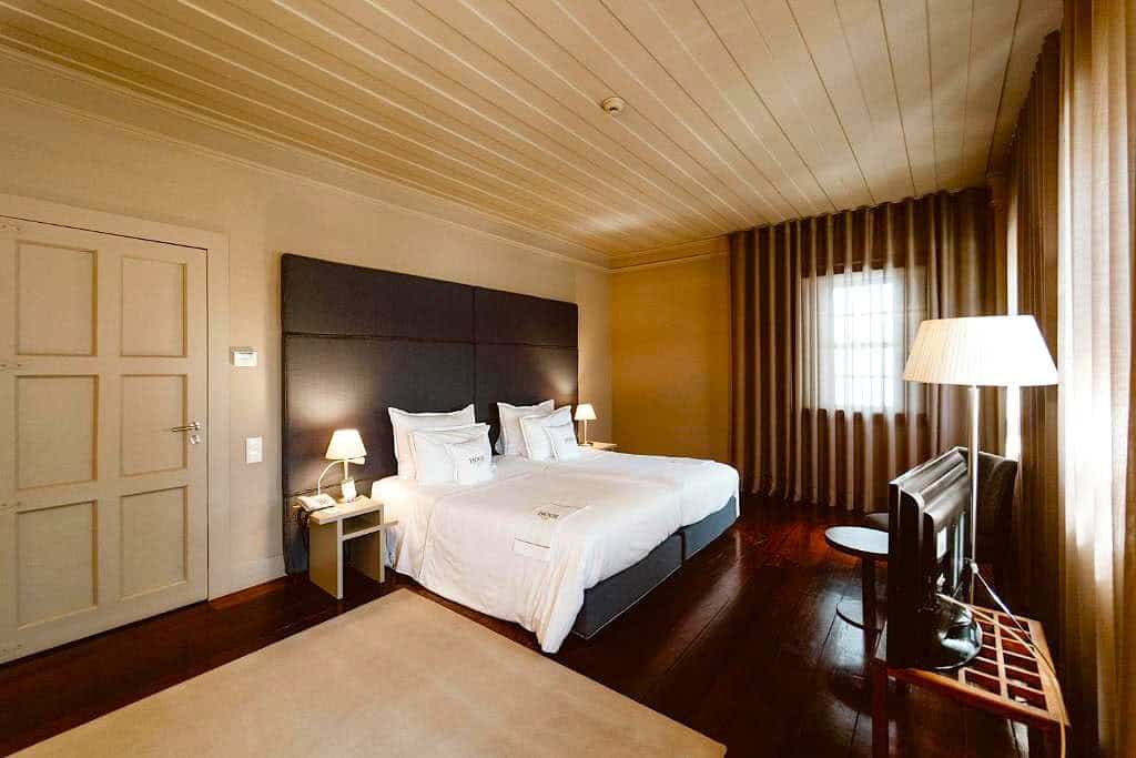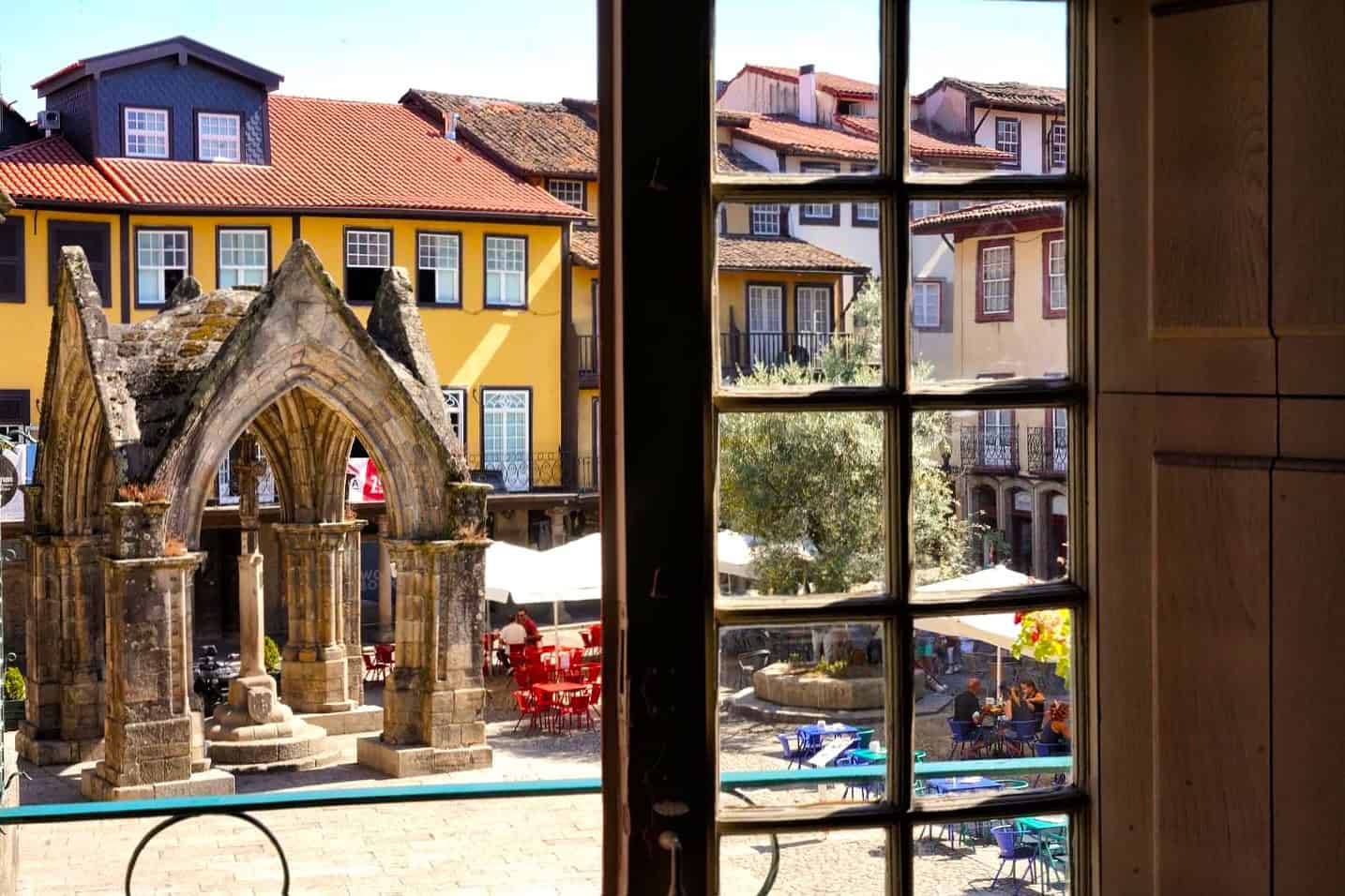The hotel’s central location is perfect for exploring Guimaraes on foot: the 14th century Igreja de Nossa Senhora da Oliveira is next door, with the famous Museu de Alberto Sampaio just beyond. A five-minute walk up Monte Latito hill brings you to the Paco dos Duques de Braganca – the restored palace of Portugal’s second royal dynasty – and the fairytale Castelo de Guimaraes.