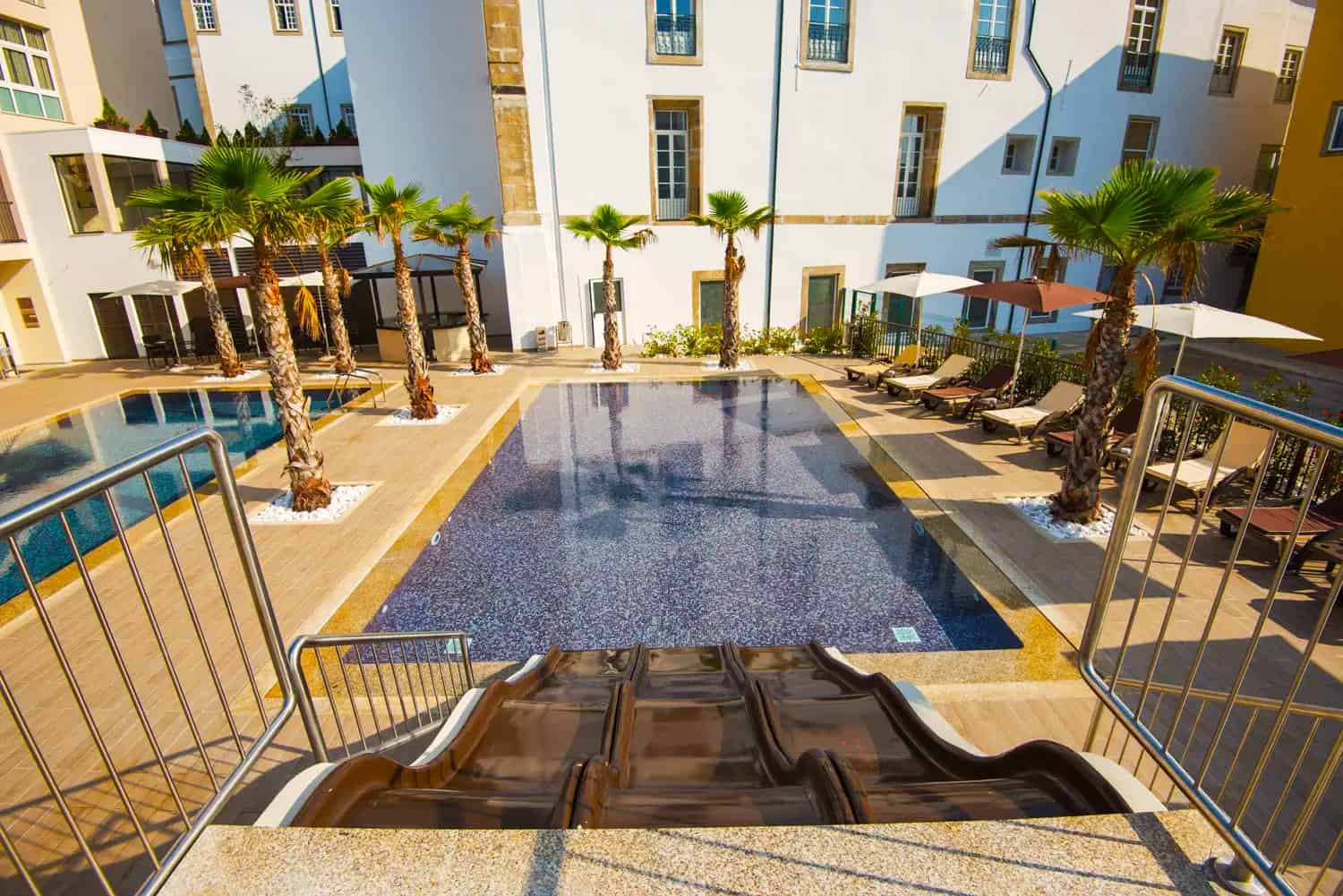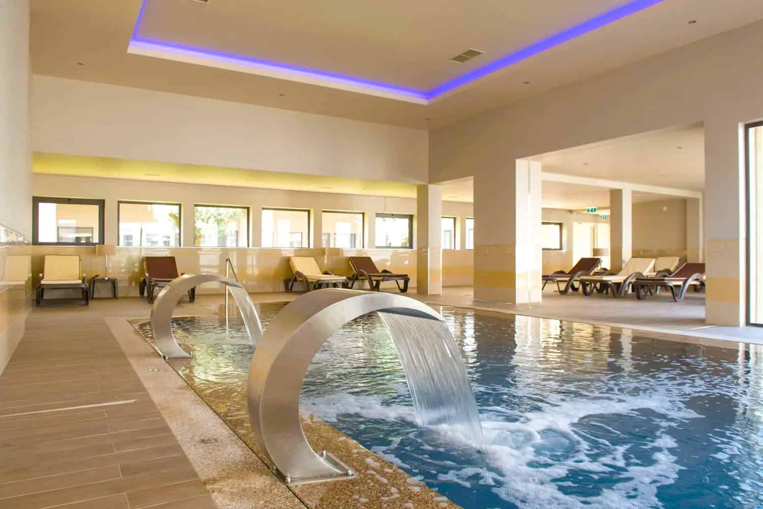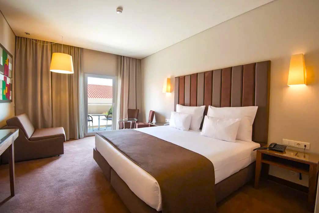 The most impressive, original architectural features can be seen in the shared guest areas: the gable archway in the entrance lobby, the vaulted ceilings in the hotel’s Versatil and Inevitavel restaurants, and the inner cloister with its baroque fountain. The 123 guest rooms are more contemporary in their feel, with a palette of gentle shades and simple, uncluttered furnishing. There are 22 family rooms, 7 superior rooms and 15 suites – some have balconies overlooking a small inner garden, others overlook the sun terrace and outdoor pool – there’s also an indoor pool and well-equipped gym.