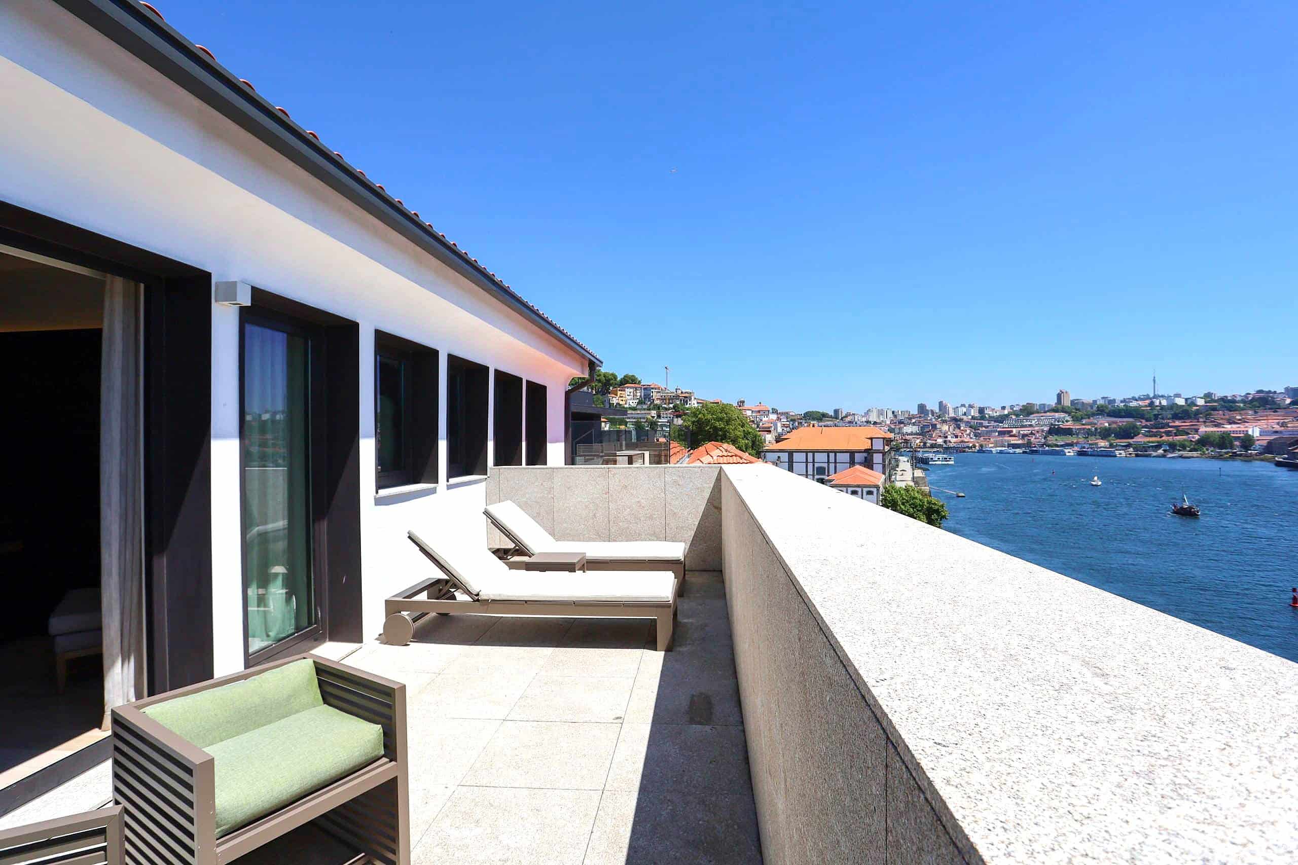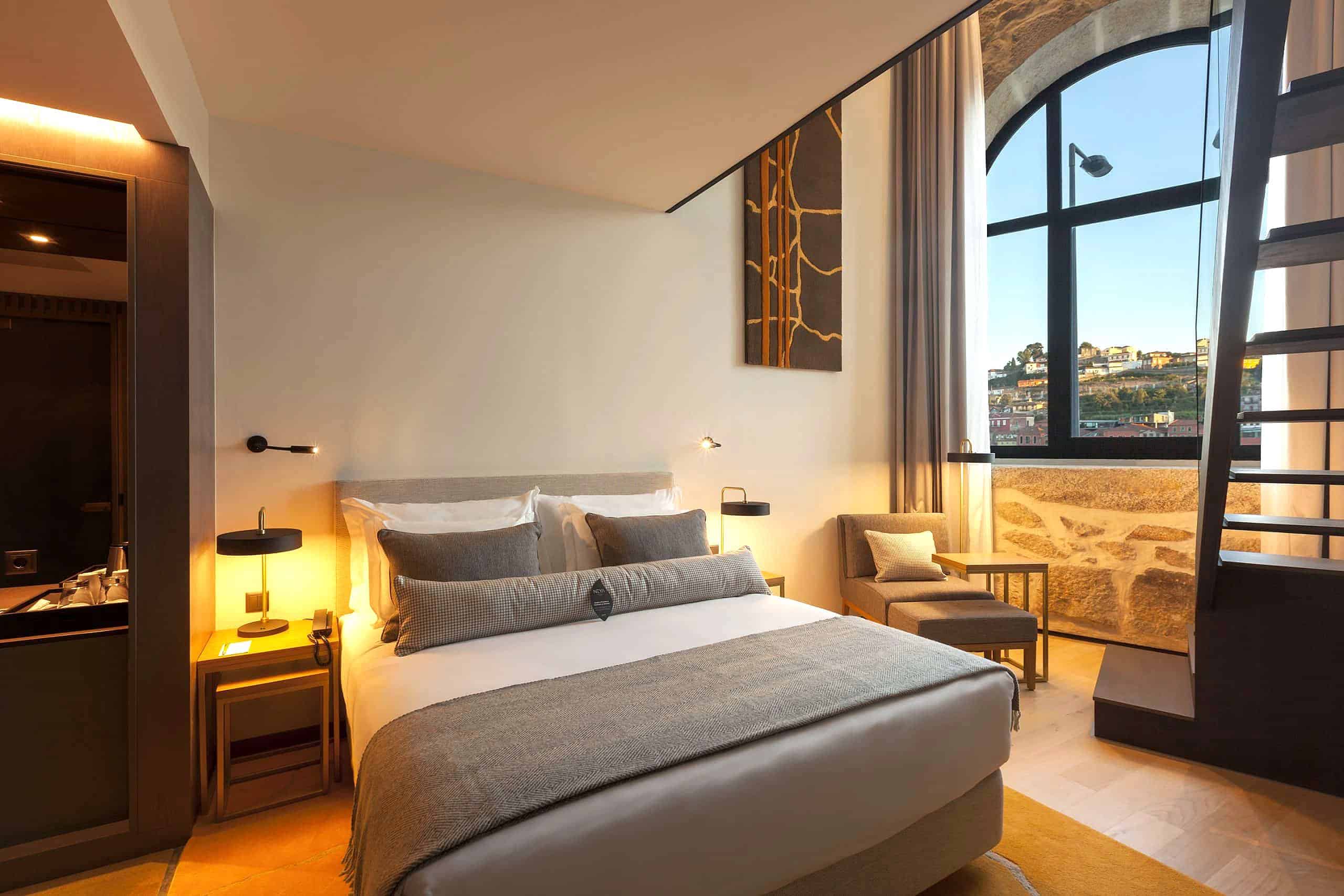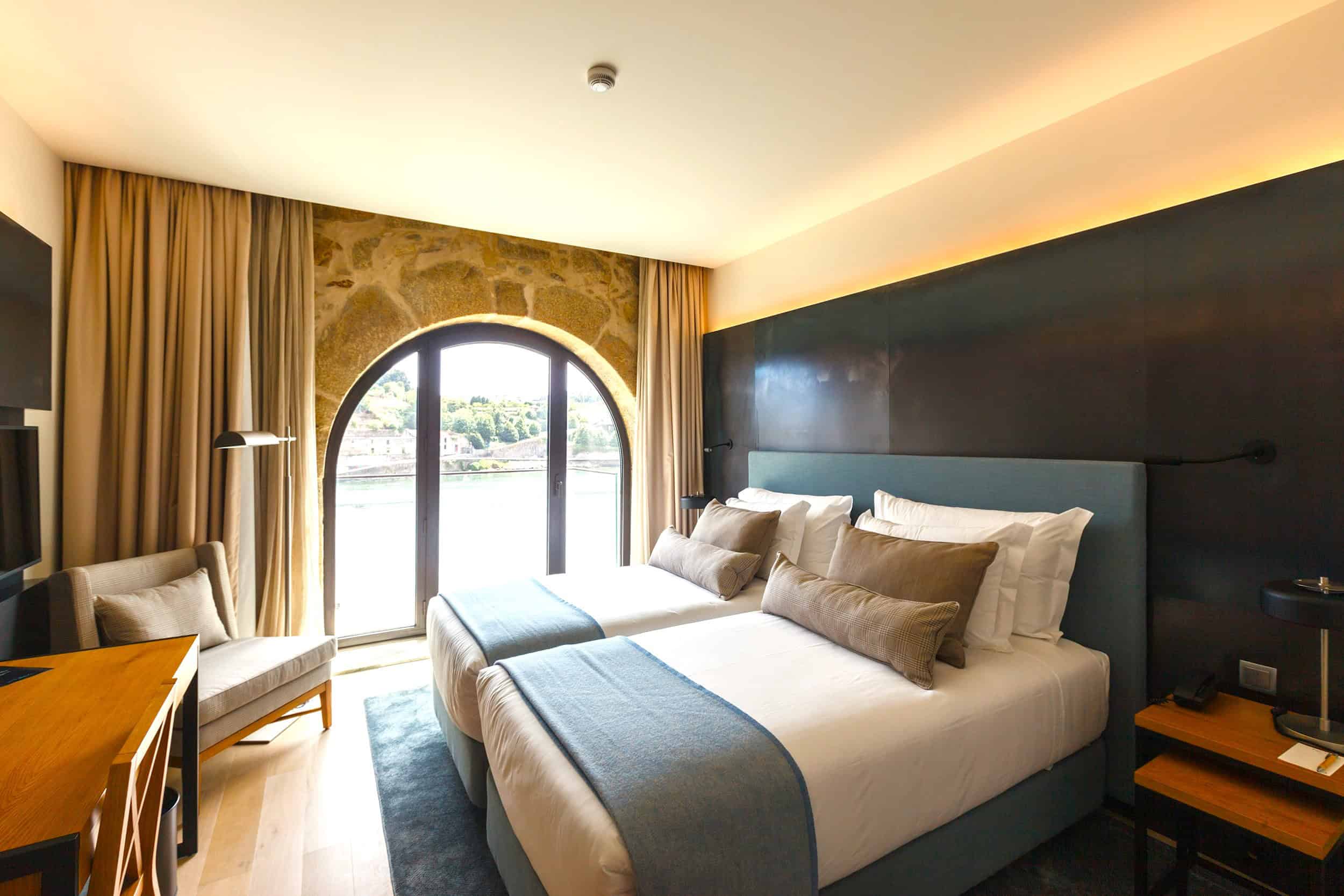 There are 124 guest rooms in total, some overlooking the courtyard and cloister, and front-facing rooms overlooking the river. The vintage Linha 1 tram line runs directly in front of the hotel – guests in the river view rooms can usually set their watches by these charming heritage trams as they rumble by.
