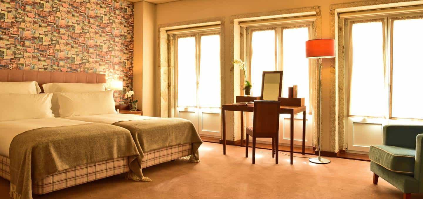 Inside, there are ten different types of room across the six stories of the hotels. Classic and Superior rooms can be twins or doubles, and have A/C, TVs, a minbar and free Wi-Fi. Vintage Front View rooms are located on the ground floor within those old city walls and have a partial view of the river, and two floors up the Vintage River View and Vintage Balcony rooms have the full, sweeping panorama of the Douro. Overlooking the Praca da Ribeira, the Plaza rooms have arguably the best view of the Ponta Luis II bridge, and there’s a charming period elegance to the Heritage and Grand View suites.