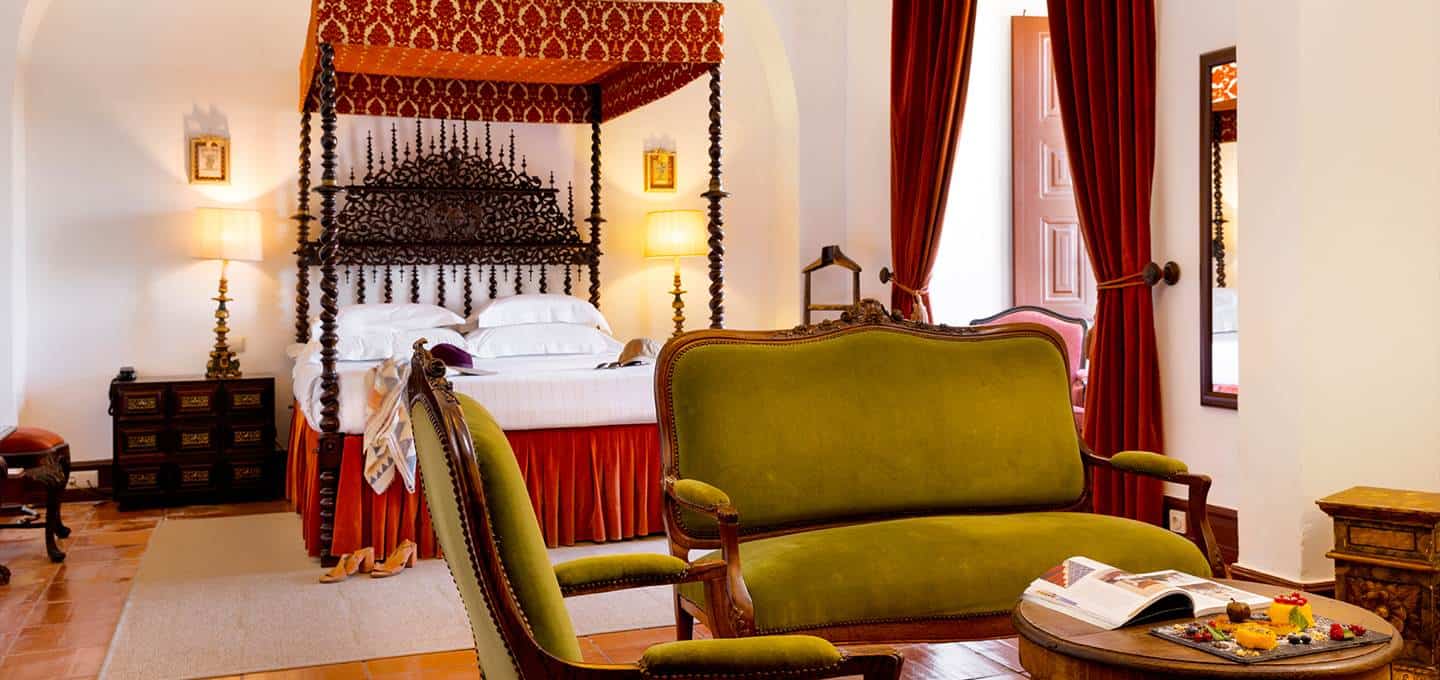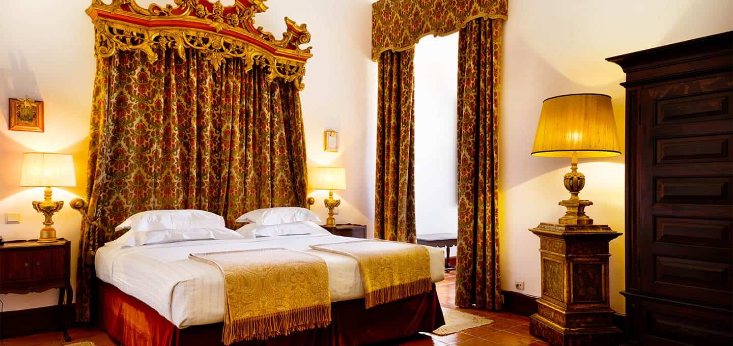 In danger of falling into disrepair, the castle was restored in the 18th century and is now classified as a protected National Monument. As the 21st century four-star Pousada Castelo Estremoz, the hotel seamlessly combines its medieval roots and 18th century opulence with the comforts of modern life. Each of the guest rooms are different – some have four-poster beds, others come with elaborately carved bedsteads, grand headboards and intricately patterned quilts – but all have comfortable soft furnishing and modern ensuite bathrooms.