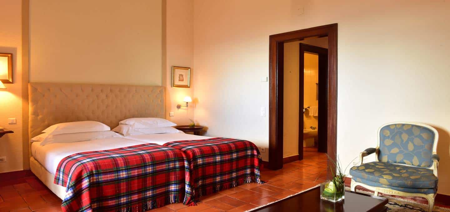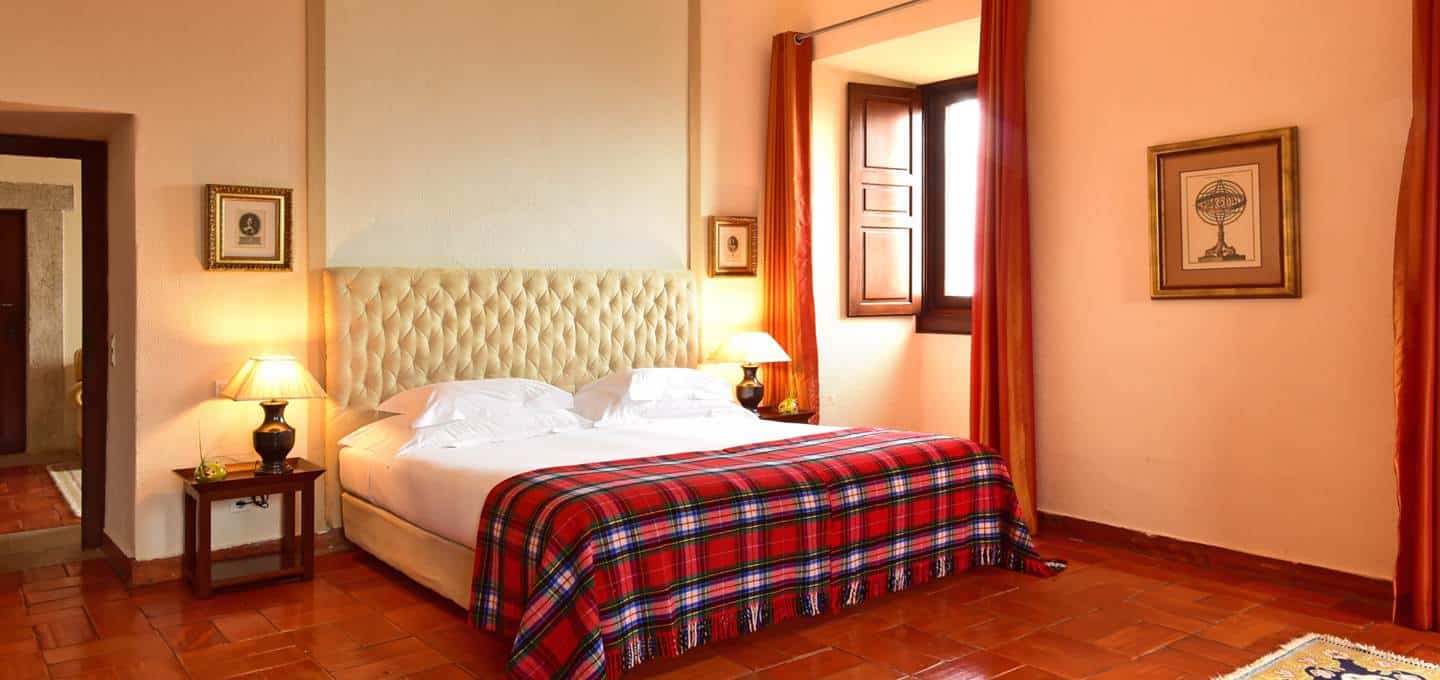 The building was saved from dereliction in the 1960s and painstakingly restored over a ten-year period, before opening its doors to the public as the Pousada Castelo Palmela hotel in 1979. The vaulted ceilings, impressive cloisters and preserved battlements call to mind the buildings medieval military past. Thankfully the once-austere, monastic cells have been converted into twenty-nine comfortable, spacious rooms, complete with vintage azulejo-tiled ensuite bathrooms.