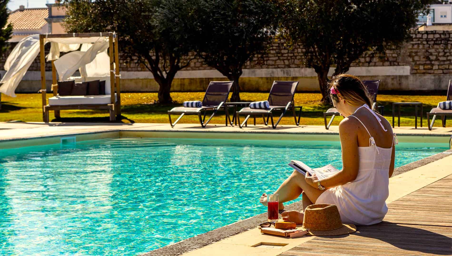 Out in the gardens, there are two outdoor pools (one for small children) and a sun terrace, and the shared spaces are completed by the cosy bar and restaurant – the Restaurante Mouraria which offers an excellent selection of regional dishes, paired with the best Alentejo wines.