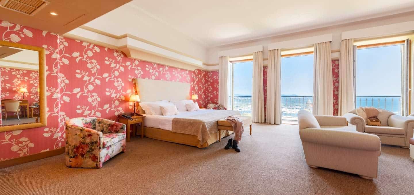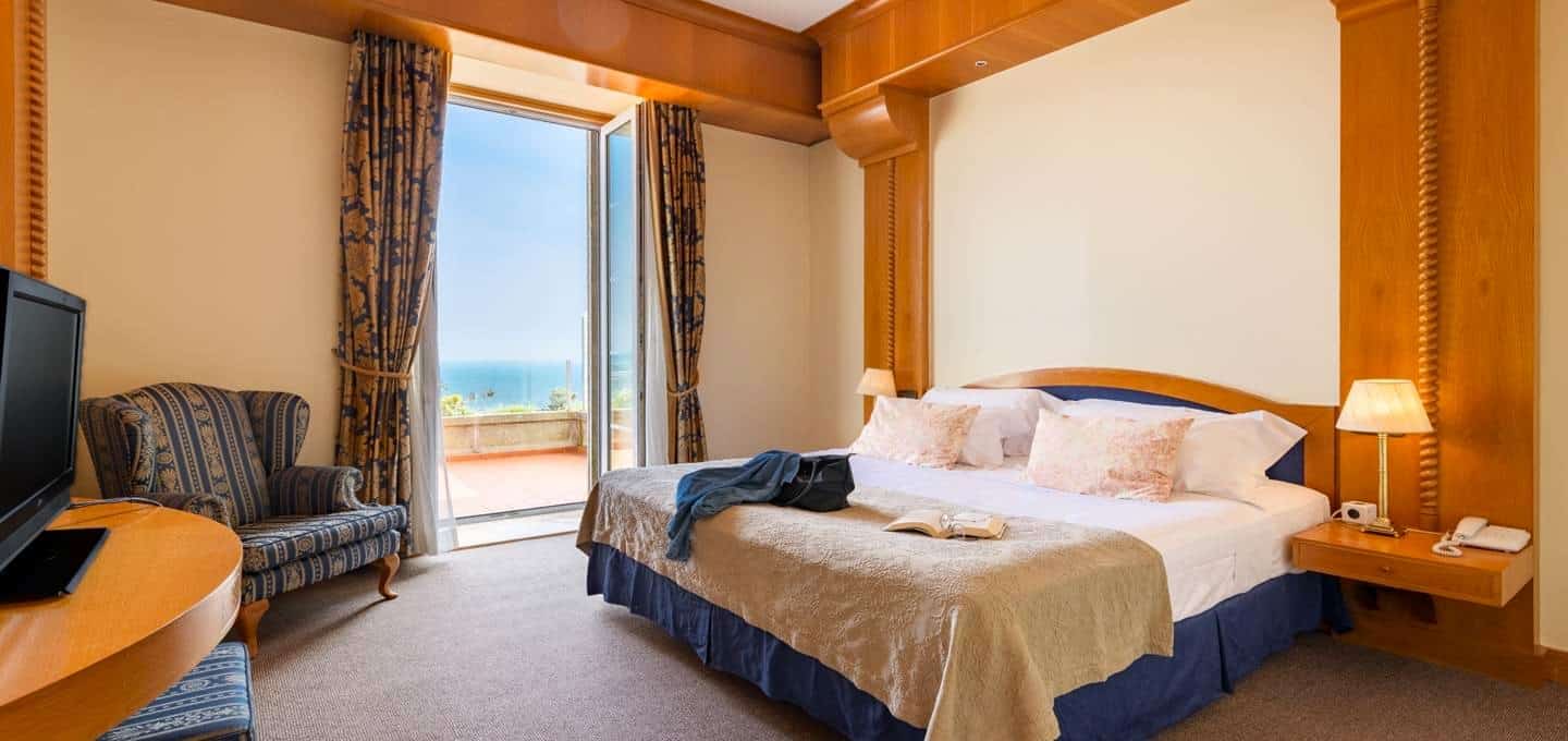 Following the Carnation Revolution in 1974 and as the country wrestled with its reinstated freedoms, the hotel was rescued from dereliction by the fledgling Pestana hotel chain. They’re now known for their sympathetic restorations of Portugal’s historic buildings, and the rescue of this pousada was at the beginning of that journey. Pestana worked hard to preserve the spacious feel of the shared spaces, guest lounges and restaurant, retaining the flood of natural light which the floor-to-ceiling south facing windows provide. Our favourite rooms also face south – across the Santuario with the Atlantic Ocean disappearing into the distance. And there’s modernity where it’s required: in the ensuite bathrooms, the contemporary fixtures and furnishing, and with the free wi-fi.