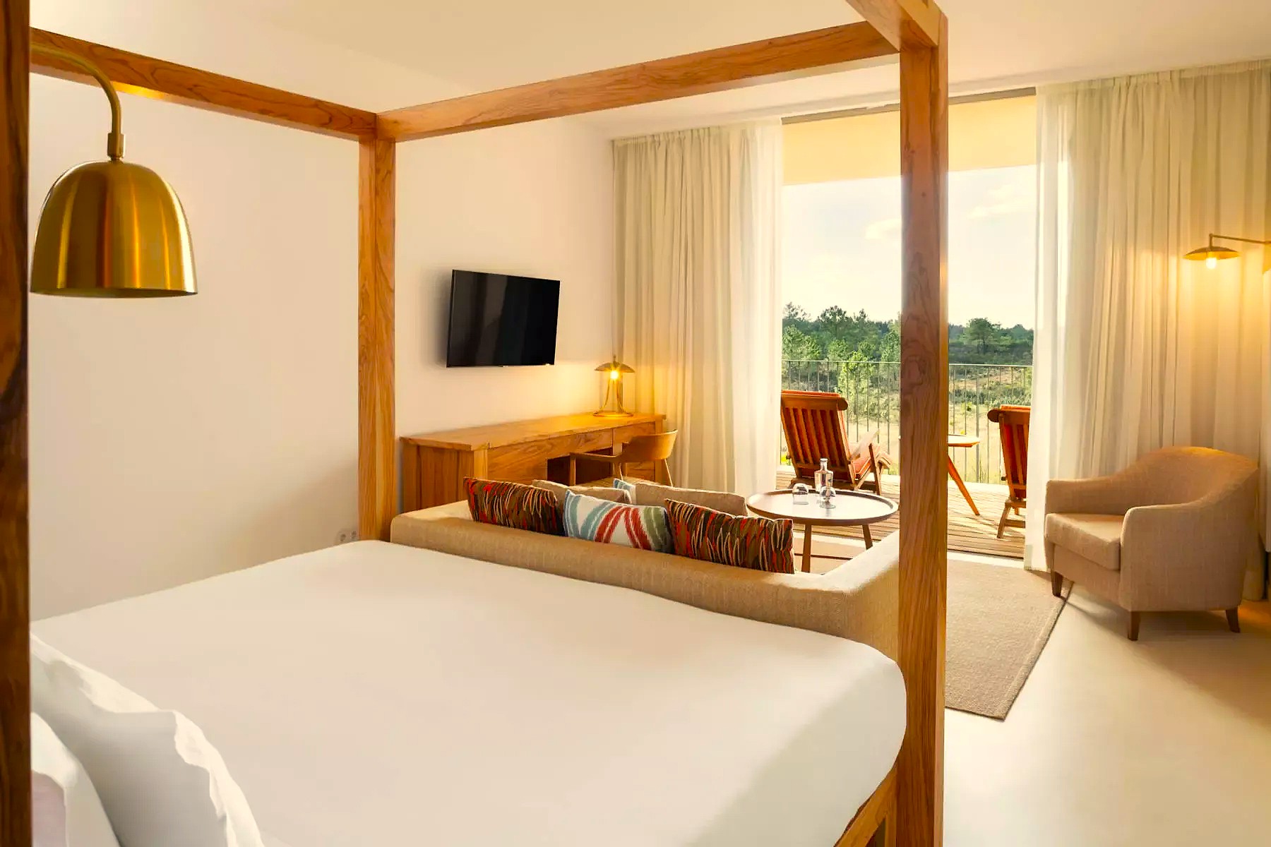 Whichever room you opt for, you’re never far from the outdoor infinity pool, the wellness centre and the Esteva Spa, and the poolside Zimbro Bar is on-hand for drinks and light bites. For your evenings, a half-board stay is recommended and the Restaurante Azeitona has a menu of refined takes on both Algarve and Alentejo regional classics.