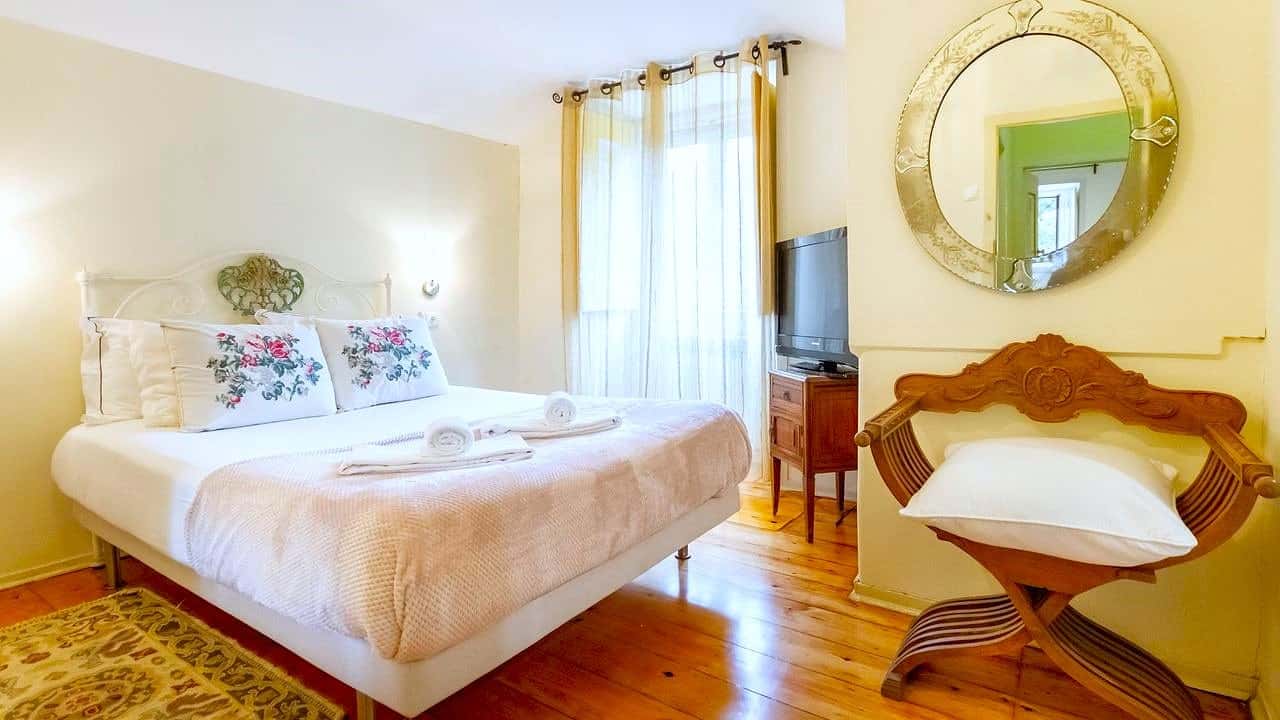 Great care was taken to renovate and reinvigorate its original architectural features: the striking geometric mosaic floors, the ostentatious gothic stone archways, and the elaborately painted panelled reliefs. The design is typical of the tail-end of Romanticism, when Portuguese architects threw caution to the wind, combining medieval and Manueline features, with islamic and byzantine. With preservation at the heart of the conversion, each of the guest rooms are individual – different in their size and their décor. There are also two apartments, one two-bedroom and one four-bedroom, with kitchenettes if you’d prefer to semi-self-cater.