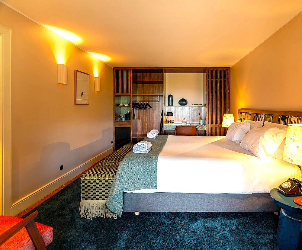Fast-forward to the 21st century and the characteristic, ordered terraces which roll in parallel bands across the undulating estate wouldn’t look unfamiliar to those early wine pioneers. The manor house is altogether different: its 18th century roots, its hand-wrought oak beams, stout granite walls, and intricate cornices are all intact. However, its cosy and relaxing interior has all of the modern amenities you’d expect from a contemporary rural hotel. There are six premium rooms in the main manor house, and their décor is a careful mix of traditional Portuguese and comfortable rural luxury. A converted wine store houses the five terrace rooms – they open onto a shared, shaded sun terrace overlooking the vineyards with the river beyond.
