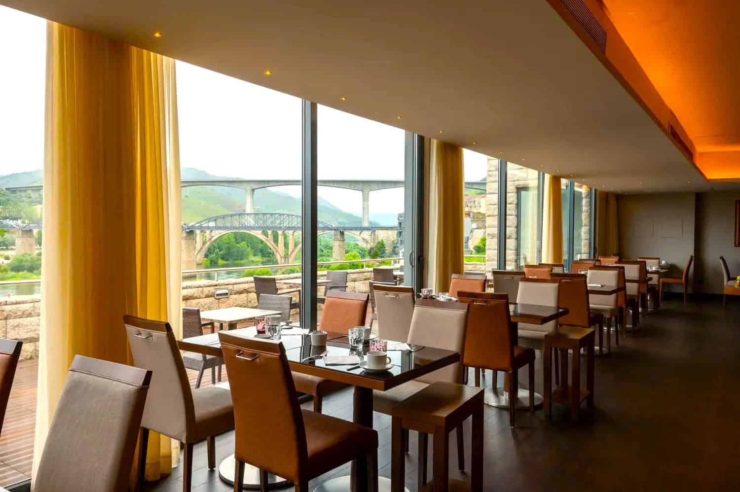 The décor follows suit – calming pastel shades, and simple uncluttered furnishing helping you to fall into the laid-back pace of life of the Douro valley. Balcony rooms look north over the river, with the triplet-bridges of Ponte Metalica da Regua, Ponte Rodoviaria da Regua and the Ponte Miguel Torga as an ever-present backdrop. There’s a similar view from the sun terrace and the in-house Restaurante Inevitavel, where you can sample traditional Douro cuisine, paired with the best of the region’s Port, DOC and Moscatel wines.