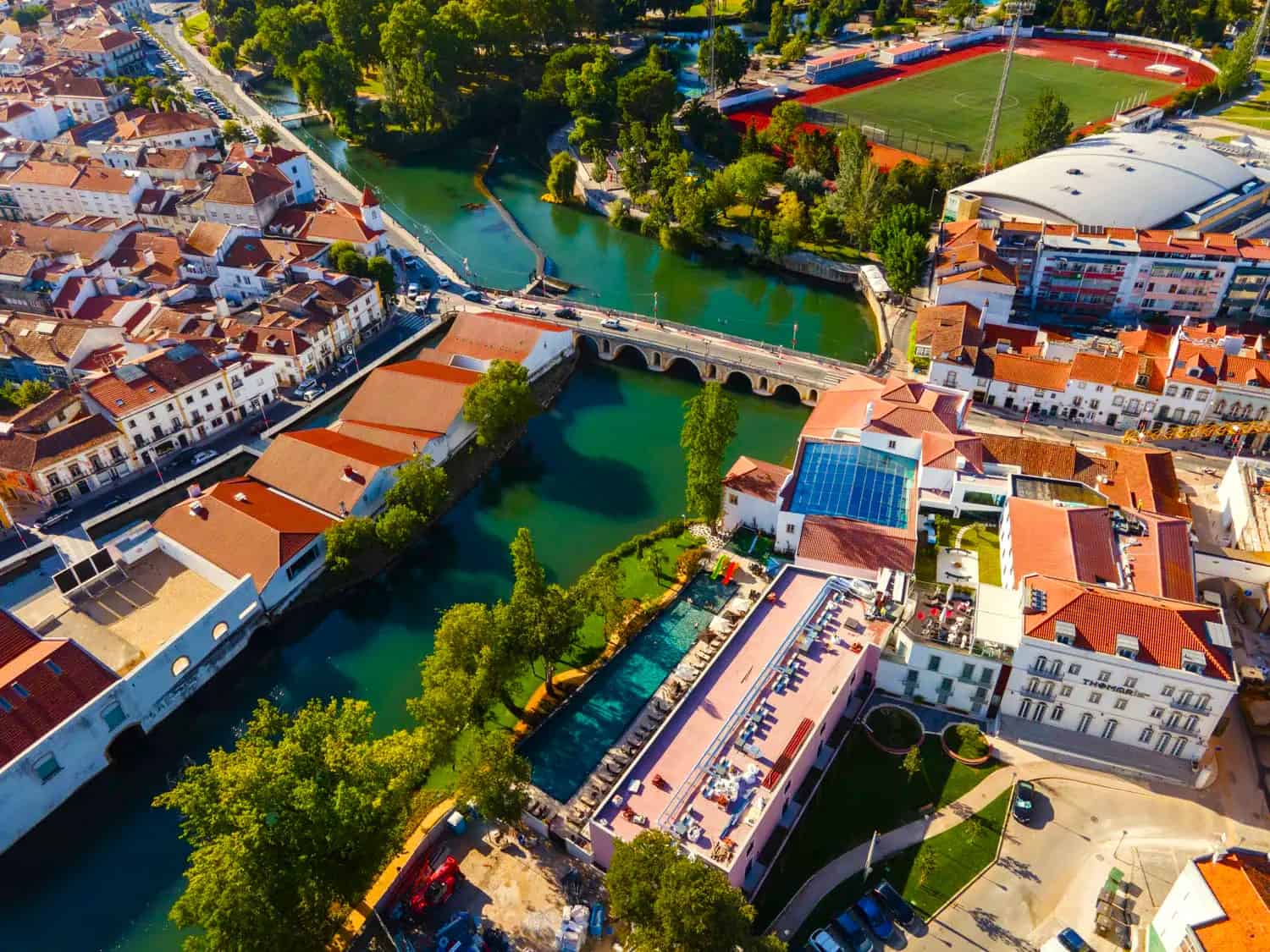 Overlooking both the river and the bridge, you’ll find the Vila Gale Collection Tomar – a four-star hotel which also bridges the old and the new of Tomar. Not quite Roman however – the older parts of the hotel were once the Convento de Santa Iria and its Colegio Feminino; both constructed in the 16th century but saved from dereliction in the 21st. They’re restored and repurposed as the Vila Gale’s main reception, Soul Bar and Versatil Restaurant, but the rounded Romanesque arches and shaded cloisters still give a feel for the building’s origins.