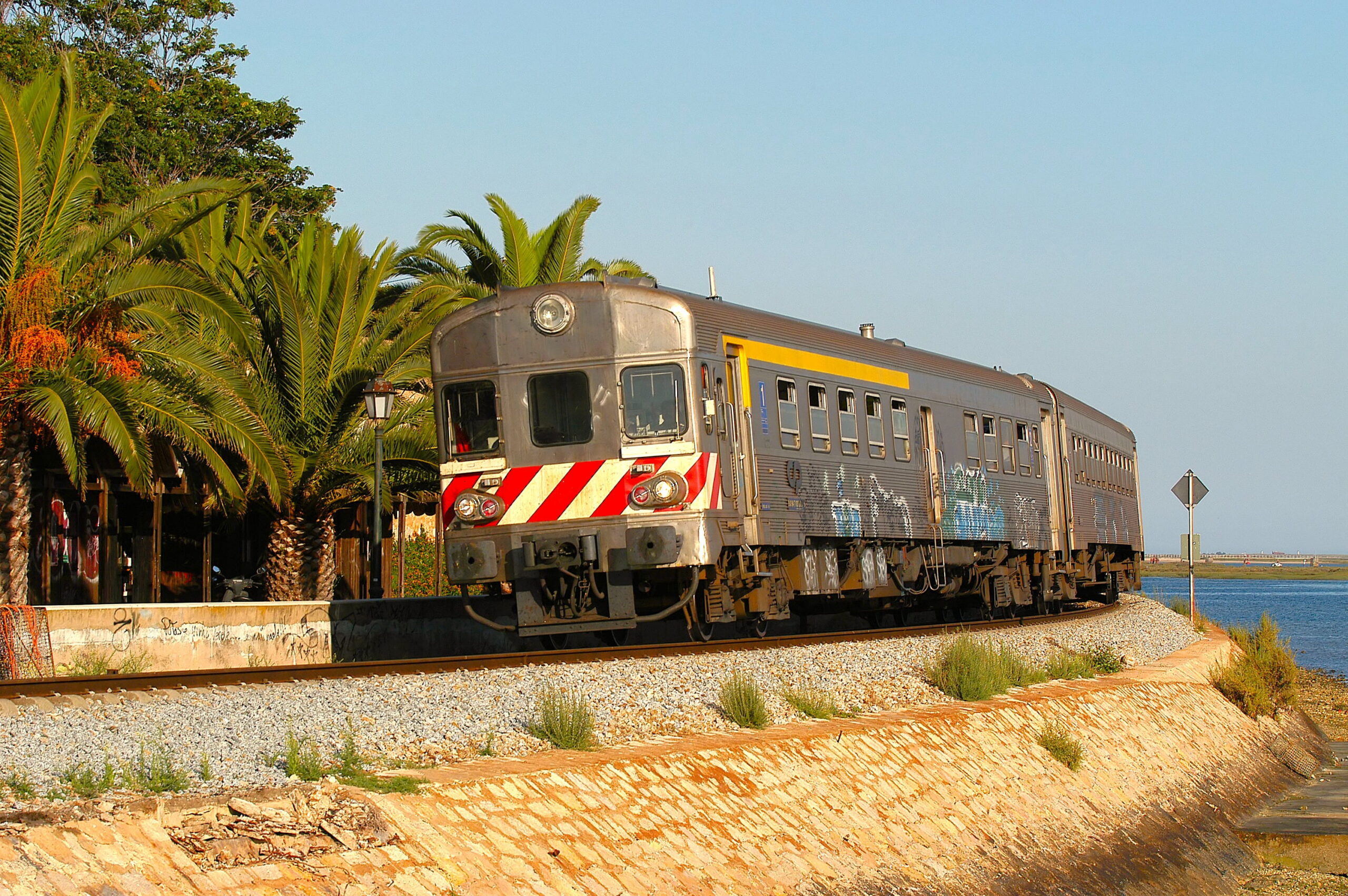One of the genuine joys of the Linha do Algarve railway is its meandering, unhurried route. As a local service, it connects the region’s smaller, less-frequented towns and villages which visitors often overlook. It’s not the most comfortable railway service: it could be argued that the stainless-steel Type 0600 DMUs are a little beyond their sell-by date. Nor is it the fastest method of travel – it’s quicker to drive from A to B on the autoestrada dual carriageways, but they’re designed to bypass town centres. And why rush when you’re on holiday?