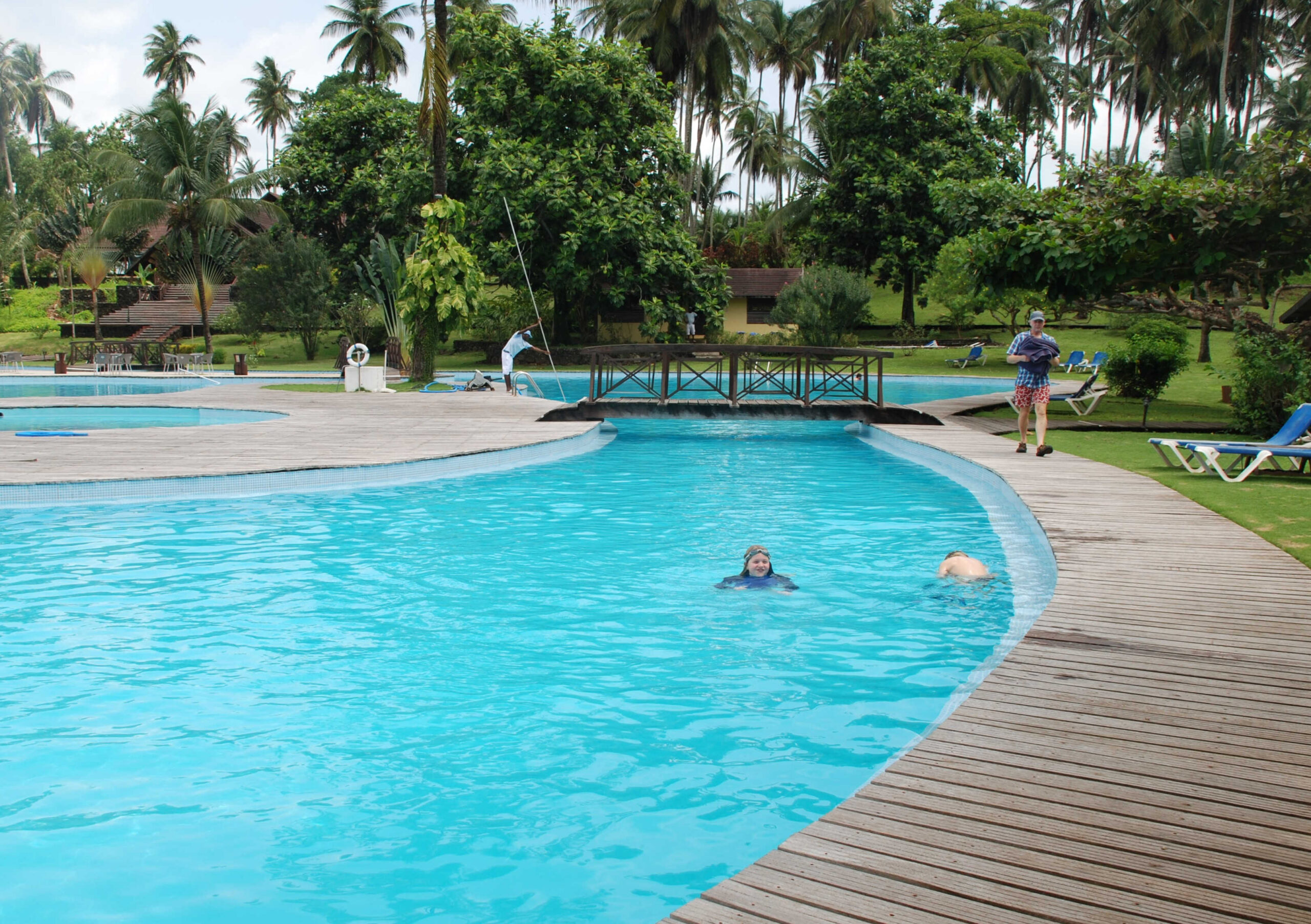 Club Santana is a beautiful beach resort on the island of Sao Tome. Set in tropical gardens next to a sandy beach, it’s a great spot for those who like to be active. There are 31 individual bungalows and guests have free use of the resorts kayaks, paddleboards and baby catamaran. There’s a spacious pool overlooking the private sandy beach, and a pool-side restaurant. .