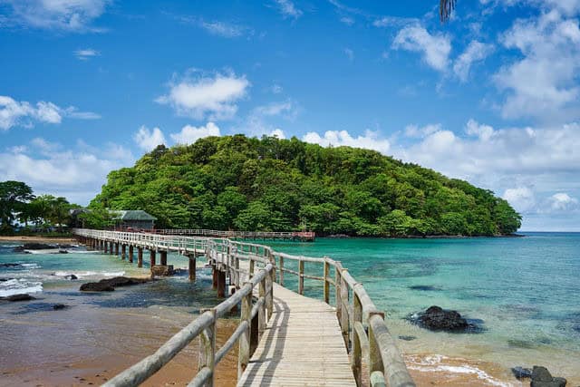 Today you could join a jeep tour of northern Principe. You'll see how life is here in tropical paradise, visit coffee and chocolate plantations, see local communities, tour the tiny capital city of Santo Antonio, have lunch in a local restaurant, tour for views of the impressive towers of rock and mountains of Principe's rugged interior.