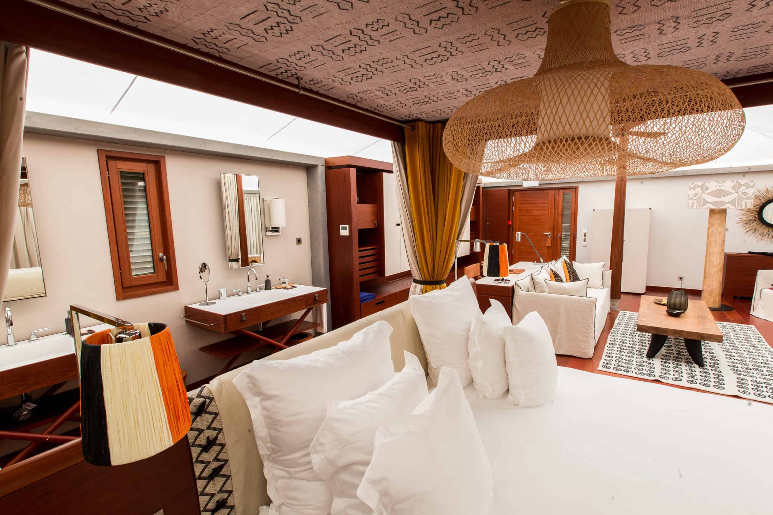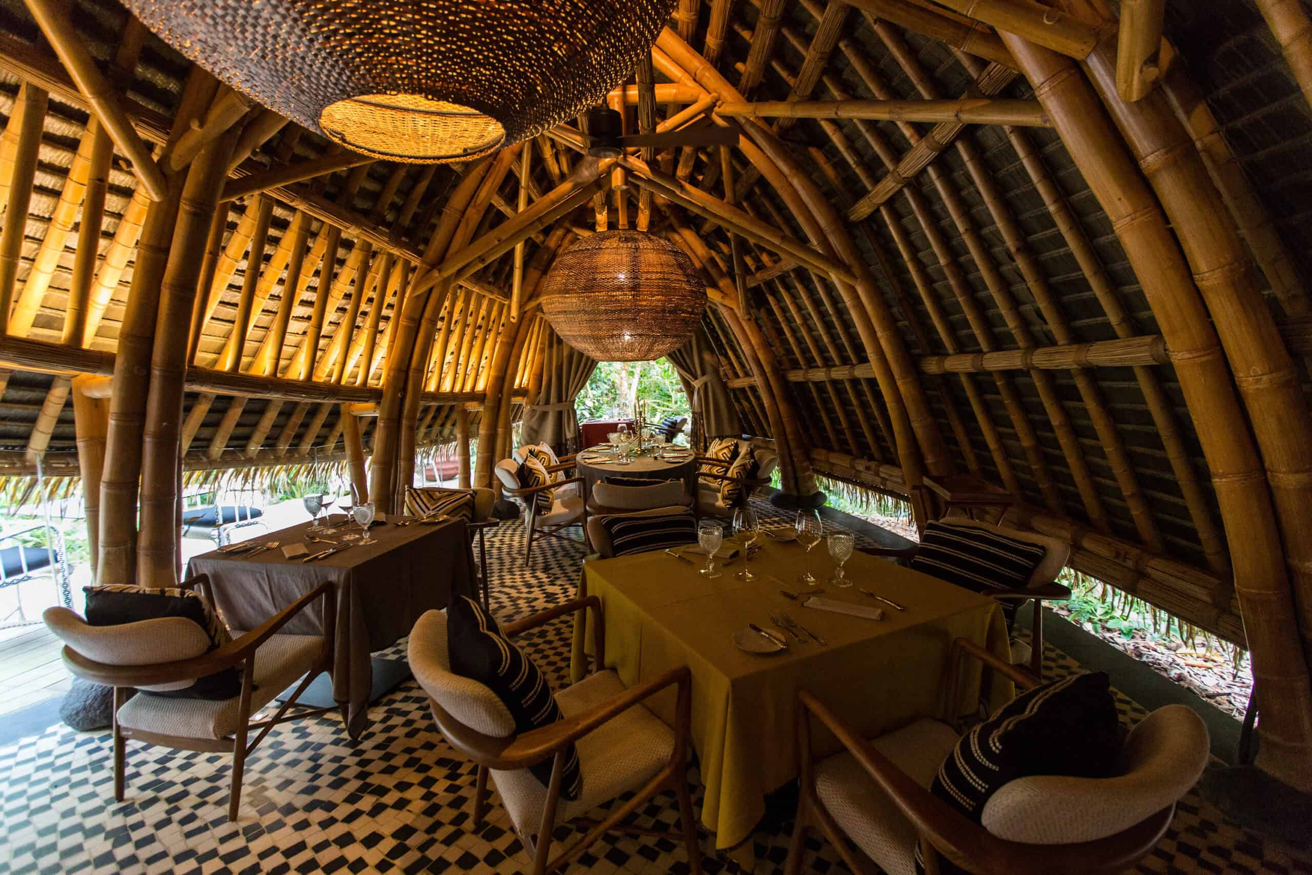You dine under a bamboo canopy, where locally sourced products are cooked over an open fire. Freshly caught fish and organic produce from their own gardens will be your daily staple. The talented chefs will create dishes that are both good for you, and mouth-wateringly delicious. When you want to relax, you simply step onto the beach, or laze in the infinity pool.