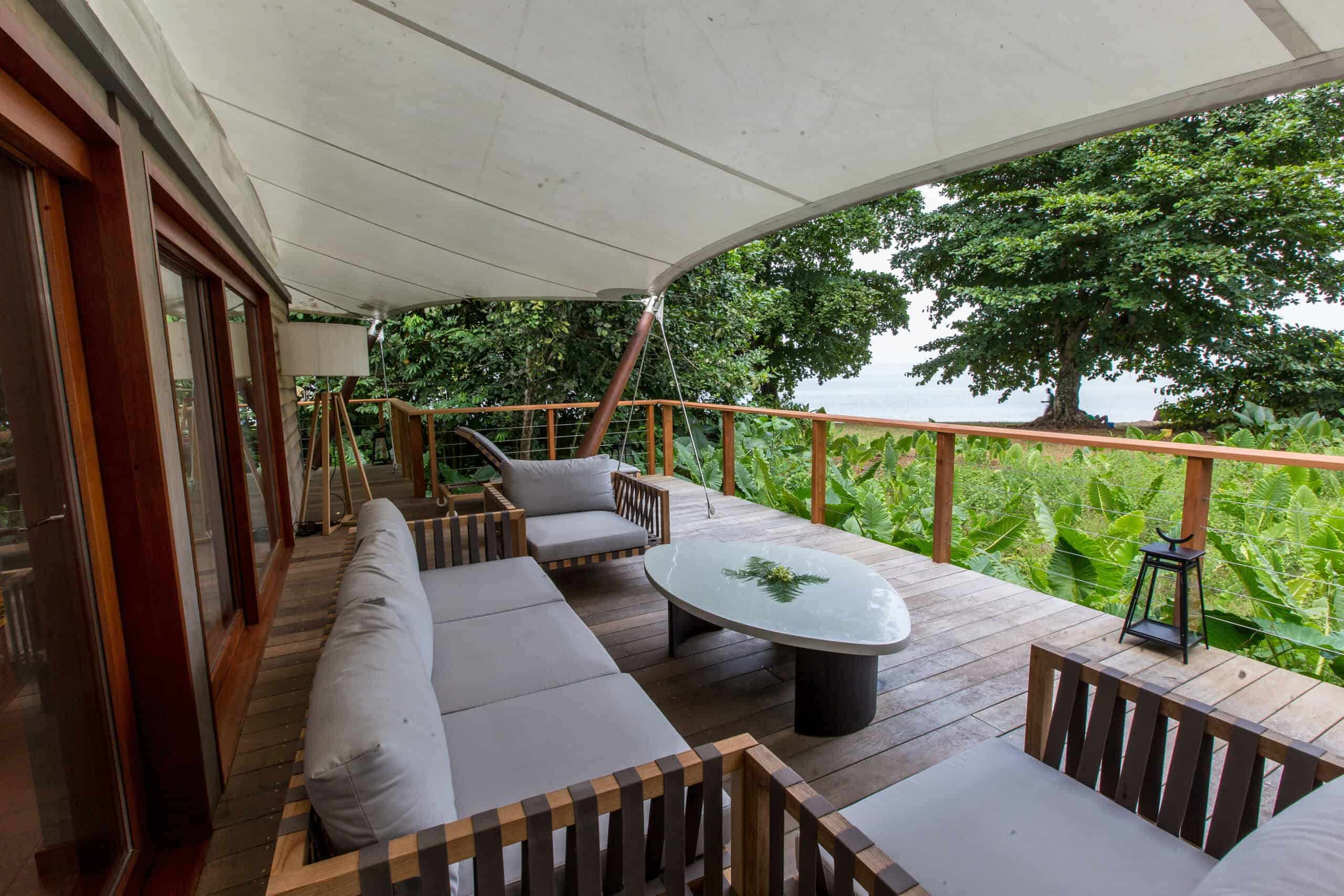 This morning you'll transfer to the airport and fly to Principe. On arrival you'll be met for your transfer to Sundy Praia. The transfer is where your adventure starts as you wind through the jungle on unsealed tracks, before coming upon the entrance lodges to Sundy Praia. You'll meet the hospitality and guiding team and settle into your villa. You might like to have your complimentary massage this afternoon, and do some snorkelling and stand up paddle boarding. As you're staying for four nights on a dinner, bed and breakfast basis, dinner tonight is in the stunningly-designed dining hall of Sundy Praia.